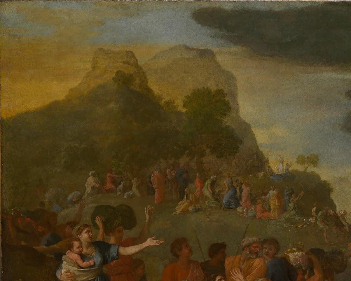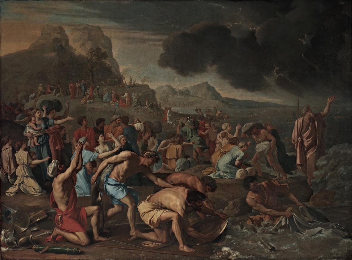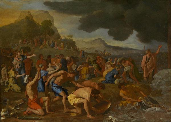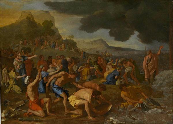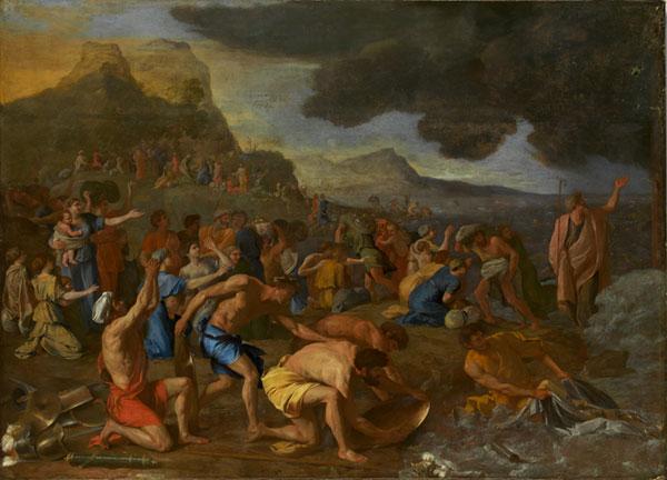 Exodus 14 is the source text for Poussin’s Crossing of the Red Sea. This highly cinematic passage of the Old Testament provides a wealth of details and scenes for narrative painters to draw on, and it is clear that Poussin studied it closely when he began devising his version.