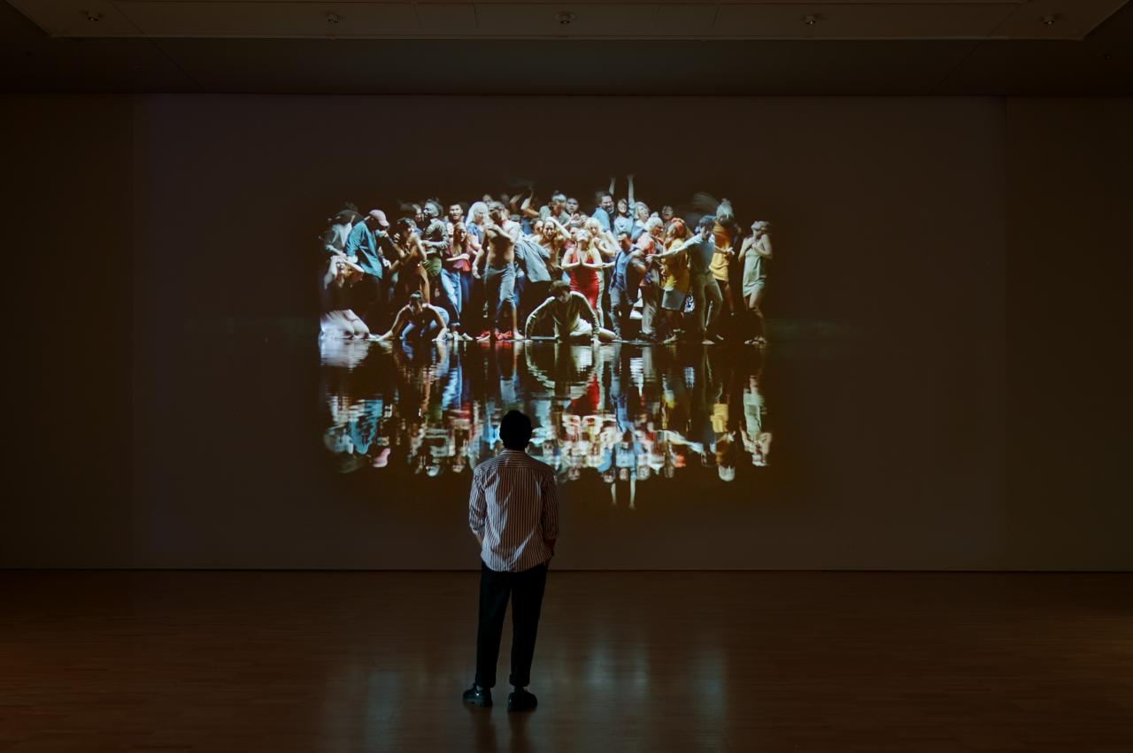 Narcissus 2019 reimagines the ancient Greco-Roman myth of Narcissus, in which a beautiful young man falls in love with his own image reflected in a pool of water. Tiatia references sources such as the 1597–99 canvas by Michelangelo Merisi da Caravaggio and Mat Collishaw’s Narcissus 1990, a self-portrait. Narcissus 2019 carries this enduring narrative into contemporary times, reflecting on global selfie culture fuelled through social media platforms such as Instagram, Facebook etc, which are saturated with images of the self. The cast of 40 Narcissi occupy a single platform in various acts of self-worship, ritual, joy, love, lust, complacency, despair and disregard in a single moment of shared time. Here, vulnerabilities, frustrations, flaws and strengths are shown as a collective effect, where various acts and emotions highlight and amplify uncertain and challenging times ahead.