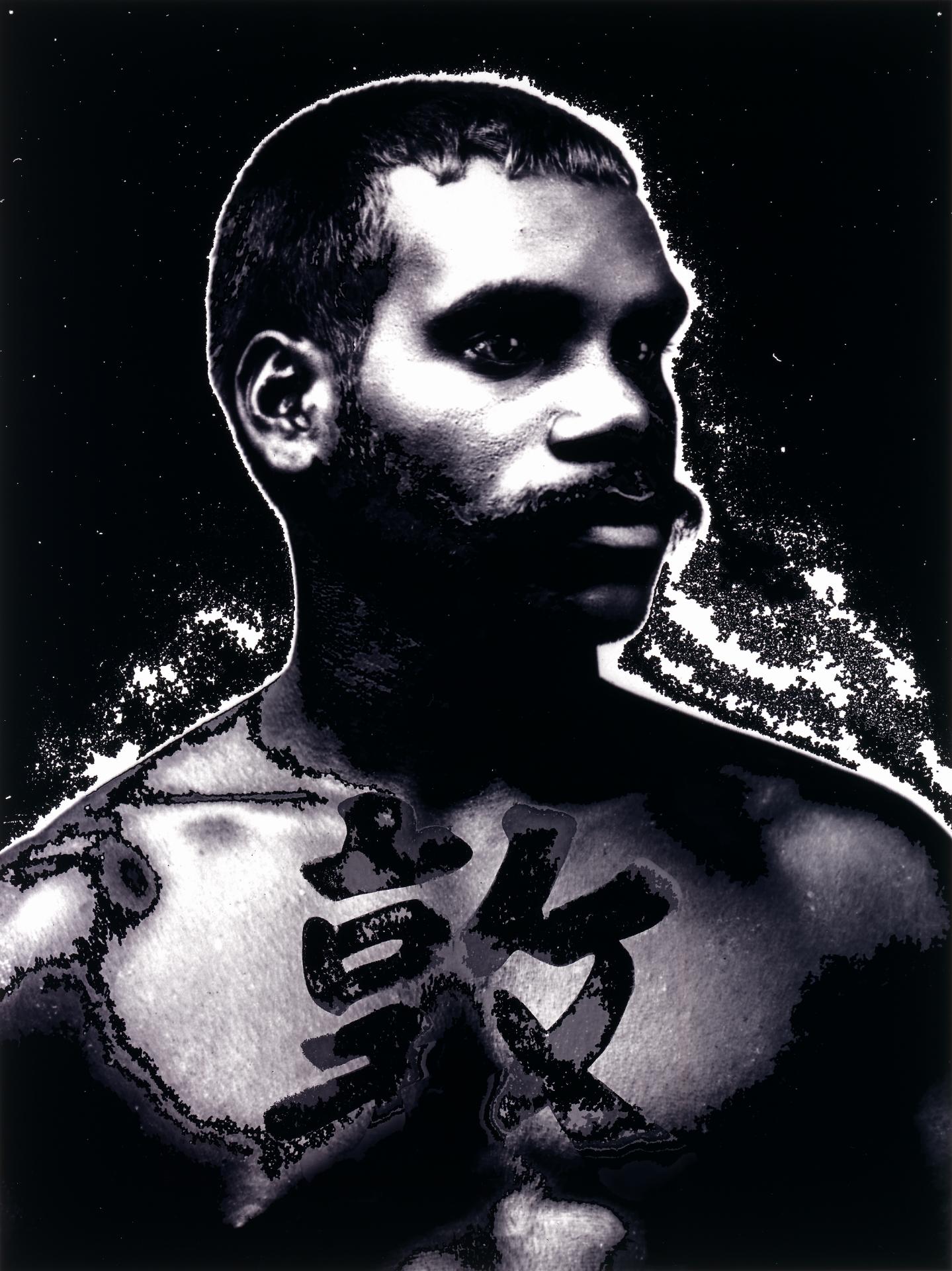 ‘Sexy and Dangerous II, 1997, features the striking image of a young Aboriginal man – we now know he was from the Armidale region in New South Wales. The image comes from a historical photograph made in the late nineteenth century under the colonial gaze. When I came to create this artwork in the mid 1990s there was little or no provenance research or cultural protocols for engaging with such ethnographic photographs. Through the last ten to fifteen years we have learnt the correct way to work with these important images and how they relate to our communities.