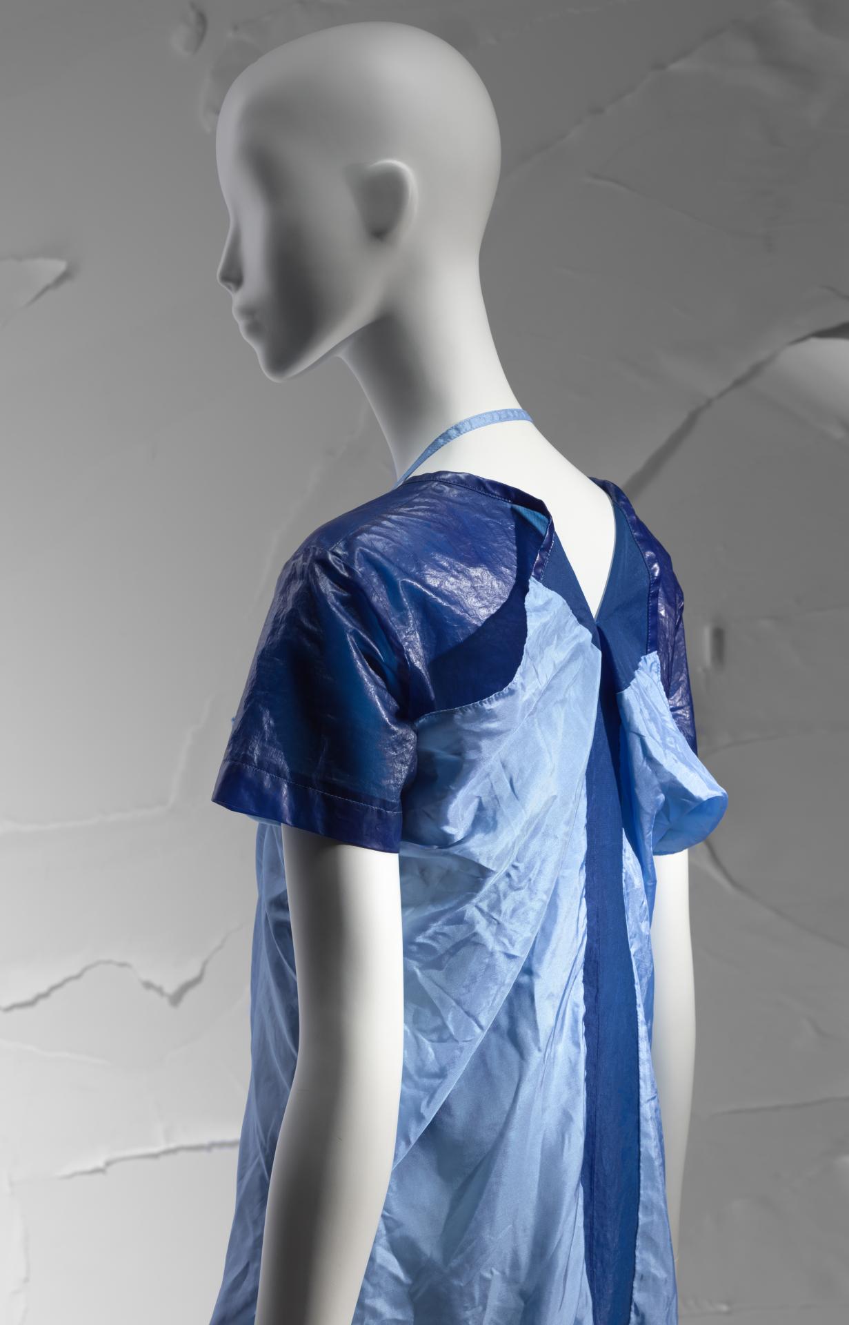 a) 135.0 cm (centre back), 53.0 cm (sleeve length) (overdress); b) 119.5 cm (centre back), 42.5 cm (waist flat) (under dress)