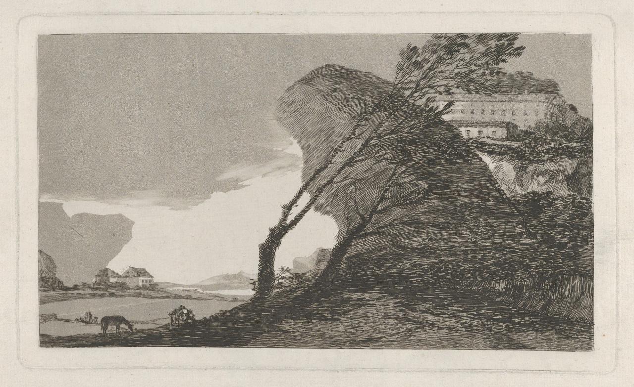 Examination of the copperplates used to produce the series indicates Goya had to make do with defective copperplates, concealing imperfections with aquatint and lavis or recycling plates by turning them over and working on the verso or by scraping them down and burnishing them to reuse the recto.23 For example, the plates used to create Amarga presencia (Bitter to be present) and Y No Hai Remedio (And there’s no remedy) were recycled from the original plate for the etching Landscape c.1807-1810.24 (See figs. 4 and 5).