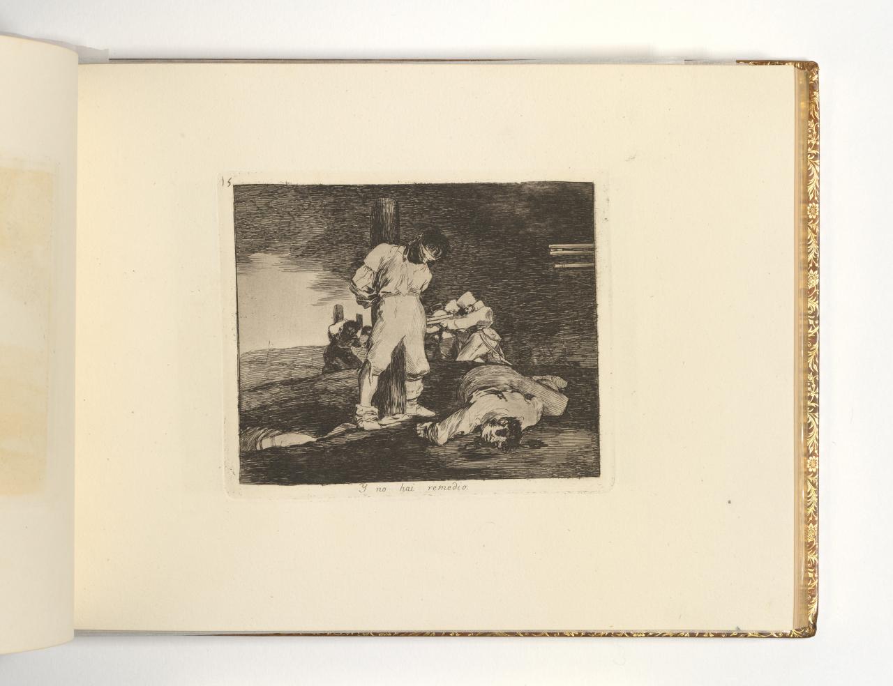 The arrival of Napoleon’s troops in Spain in 1808 announced the beginning of the Peninsular War that inspired Goya’s ambitious project Los Desastres de la Guerra.21 This series includes graphic depictions of the war, the subsequent guerrilla uprising, and the Madrid famine of 1811 to 1812.22 During the famine years, French invaders, Spanish guerrillas, and bandits blocked paths and roads into Madrid, interrupting the supply of food and general provisions.