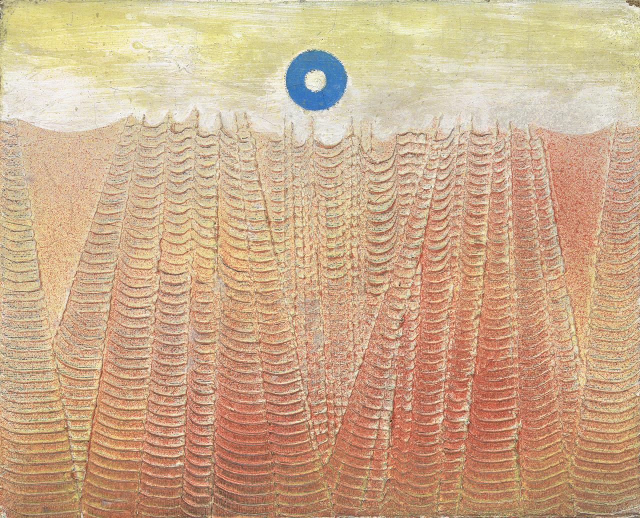 Forests and suns are central to Max Ernst’s personal symbolism, which coalesced between 1925 and 1928 during three crucial years of experimentation. In this period Ernst developed the technique of grattage (scraping), in which the forms of objects placed beneath a canvas are revealed by scratching with a palette knife across the paint surface. By also using collage (pasting) and frottage (rubbing), Ernst combined elements of the external world in unexpected and poetic ways, resulting in Surrealist ‘landscapes of the mind’.