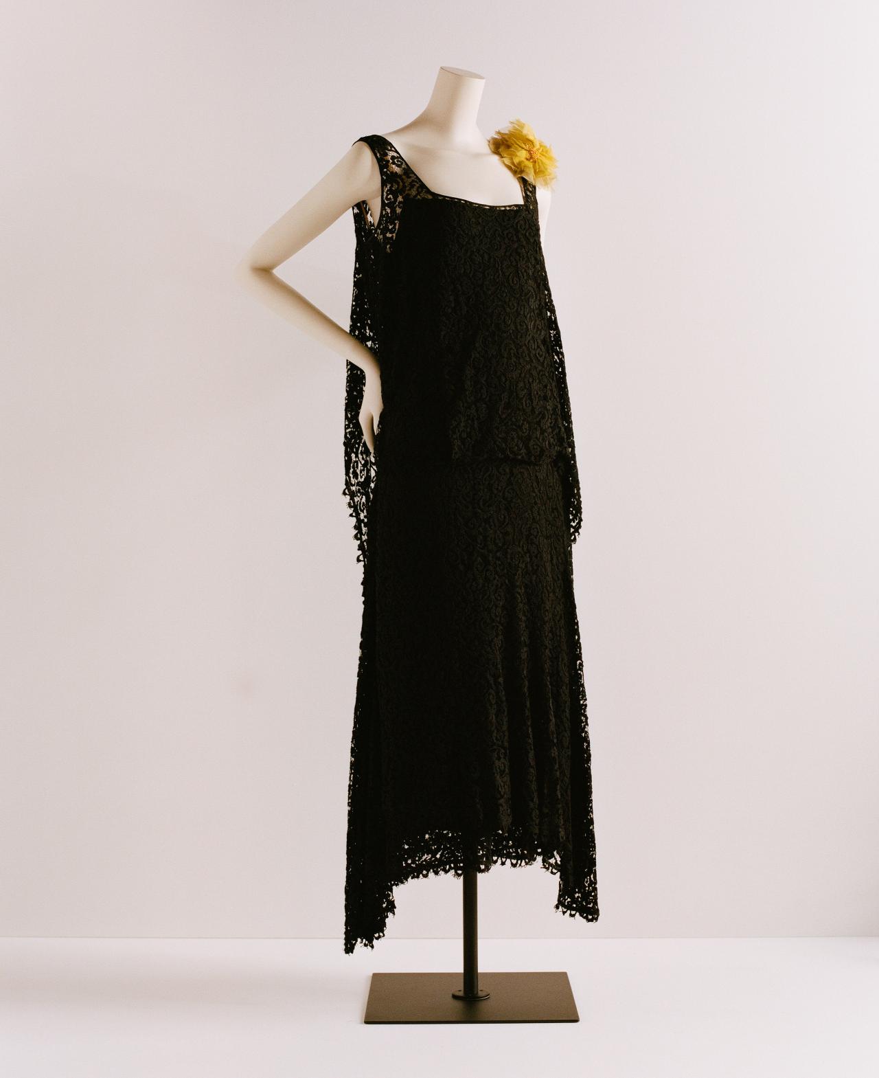 This December, our exclusive Australian staging of Gabrielle Chanel. Fashion Manifesto is not to be missed with more than 230 garments, accessories and jewellery pieces on display in a celebration of renowned French couturière Gabrielle Chanel. Chanel’s noteworthy contribution to twentieth century fashion is undeniable, having defined a new way of dress for women that preferenced comfort without compromising on style. One of her most significant design legacies is the little black dress, and this work dates to spring–summer 1925. In Chanel’s hands, black became equated with elegance and understatement. She employed it in a variety of fabrics and forms throughout her career, playing with texture, sheen and line. The lace in this example highlights the straight tubular silhouette of the 1920s, and the associated youthfulness of bare shoulders. Visitors will also see floral motifs throughout the exhibition, referencing Chanel’s love of flowers, as seen here in the detail of a yellow flower perched on the shoulder for decoration.