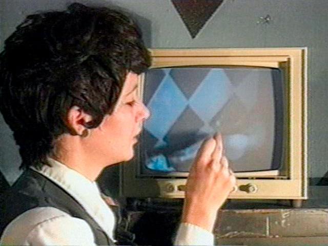 This live image is colorized by a device which adds color to a black and white image and in turn manipulates the color. Colorized color is more opaque and less three-dimensionally tactile than synthesized color, but it is tactile in its video scan-line texture.5