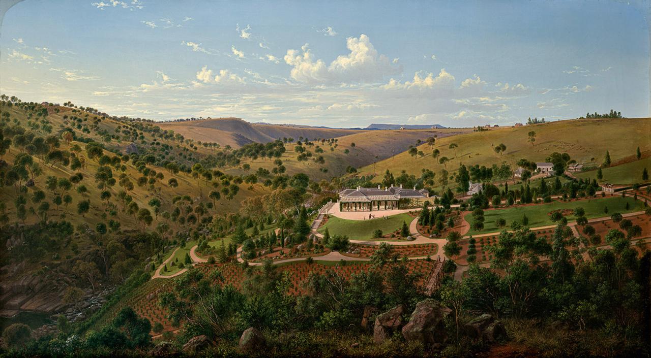 Von Guérard successfully marketed his talent for realism to affluent Victorian landowners, enabling him to secure a range of commissions of homestead portraits modelled on similar paintings of English country houses. This unique body of work provides an illustrated chronology of pastoral development from early colonial cottage dwellings to more stately mansions and, like his written record of the gold fields, documents a social and geopolitical adaptation of land after European settlement.