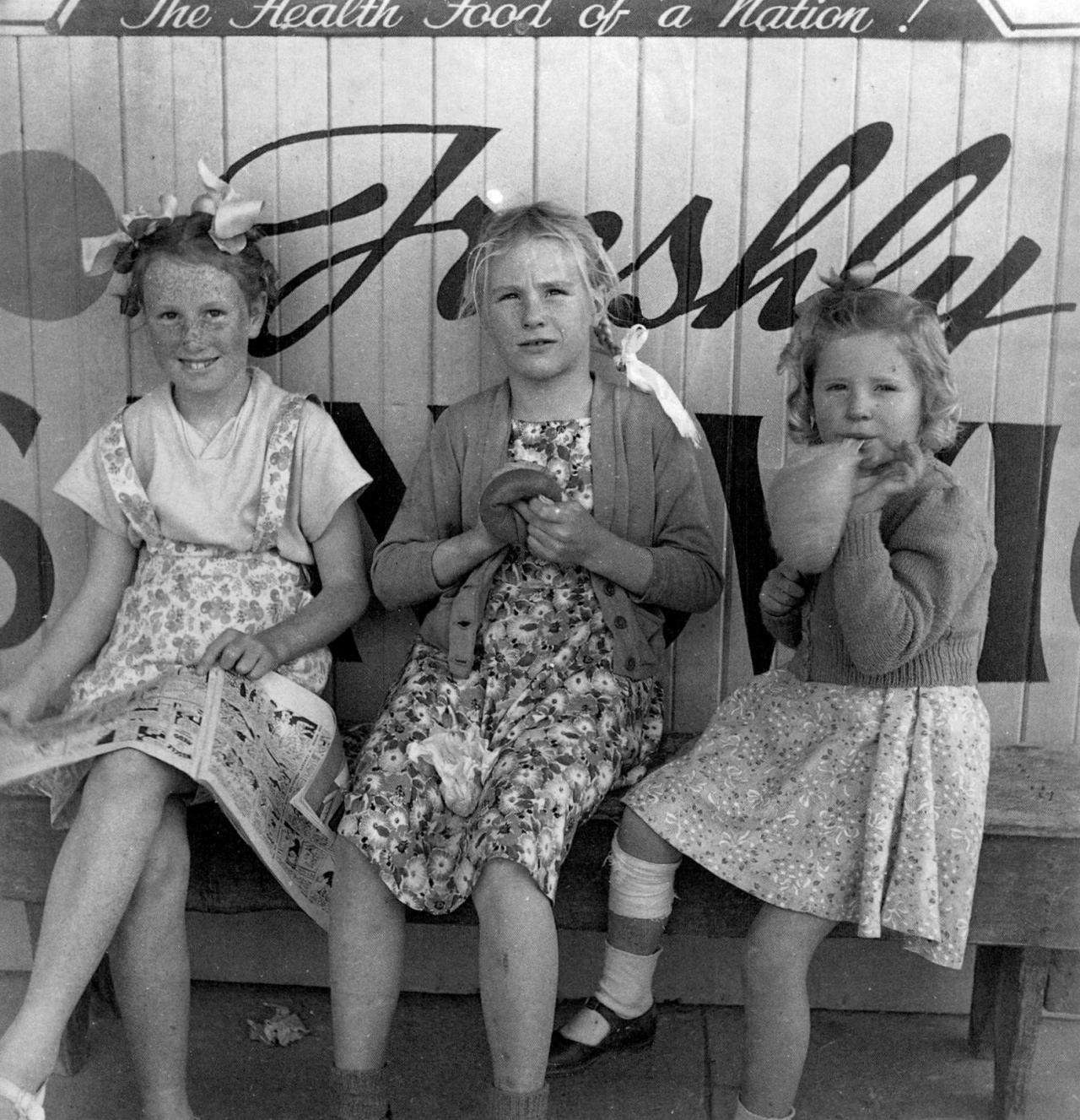 Children of the Mallee is part of a group documenting some of the people who lived in this area. It is a direct, frontal image which charmingly captures a distinct period in our history. The clothes and hairstyles of the girls, along with the sign behind them, irrevocably link them to the rural Australia of the 1940s.