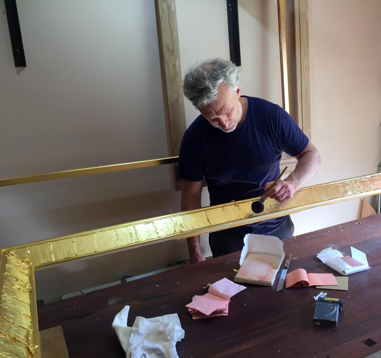 Finishing gilding of Arthur Streeton’s Spring frame at home during 2020 COVID lockdown.