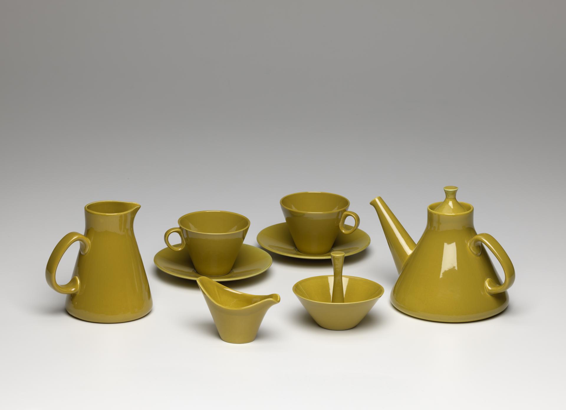 These innovations were not restricted to North America. Finnish designer Kaj Franck held similar ideals to Wright in wanting to make good design available to all. His 1952 Kilta tableware range, of which the Teema series was a later iteration, was produced in a range of mix-and-match colours and was hardwearing, stackable, attractive and affordable. Like Wright’s American Modern range, it offered a fresh alternative to historically inspired services with their complex forms and heavy decoration that were emblematic of the prewar era.