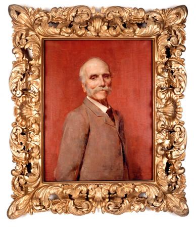 Roberts did, on occasion, use European frames – albeit frames of a traditional design – for his Australian works. His 1895 portrait of Edward David Stewart Ogilvie (Mitchell Library, State Library of New South Wales, Sydney),13Topliss, vol. 1, no. 241. for example, is housed in a particularly fine European frame (fig. 1). Roberts worked on this portrait at Yulgilbar, Ogilvie’s property in the Clarence River area of New South Wales. Evidence confirming that the present frame is that in which the portrait was originally housed is provided by a photograph that shows the painting hanging above a mantelpiece at Yulgilbar c.1900.14This photograph is now in the collection of the Mitchell Library, State Library of New South Wales, Sydney. For a reproduction, see T. Lane & J. Serle, Australians at Home: A Documentary History of Australian Domestic Interiors from 1788 to 1914, Melbourne, 1990, pl. 302.