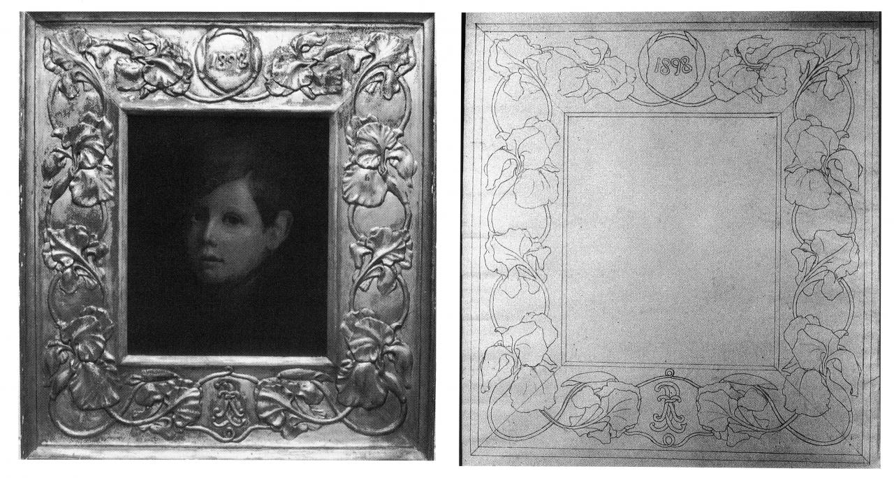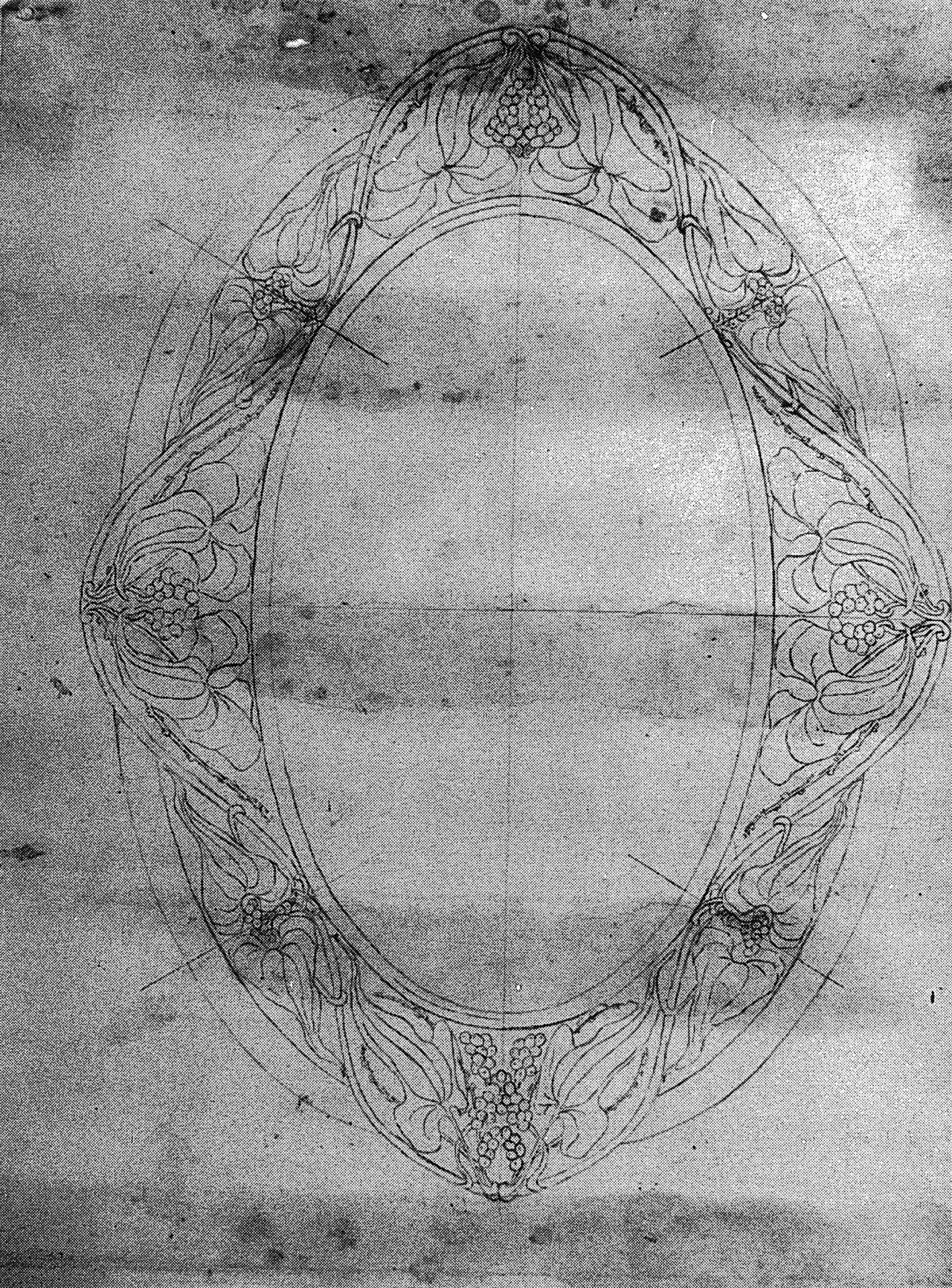 The singer Mme (Nancy) Elmhurst Goode recorded the purchase of a Williamson frame by Princess Louise, daughter of Queen Victoria, at an Arts and Crafts Exhibition c.1906. According to Mme Goode, the frame had a carved design of bryony berries and leaves,28See Croll, p. 157. a description that corresponds to a drawn design (for an oval frame) at the National Gallery of Victoria (fig. 5).