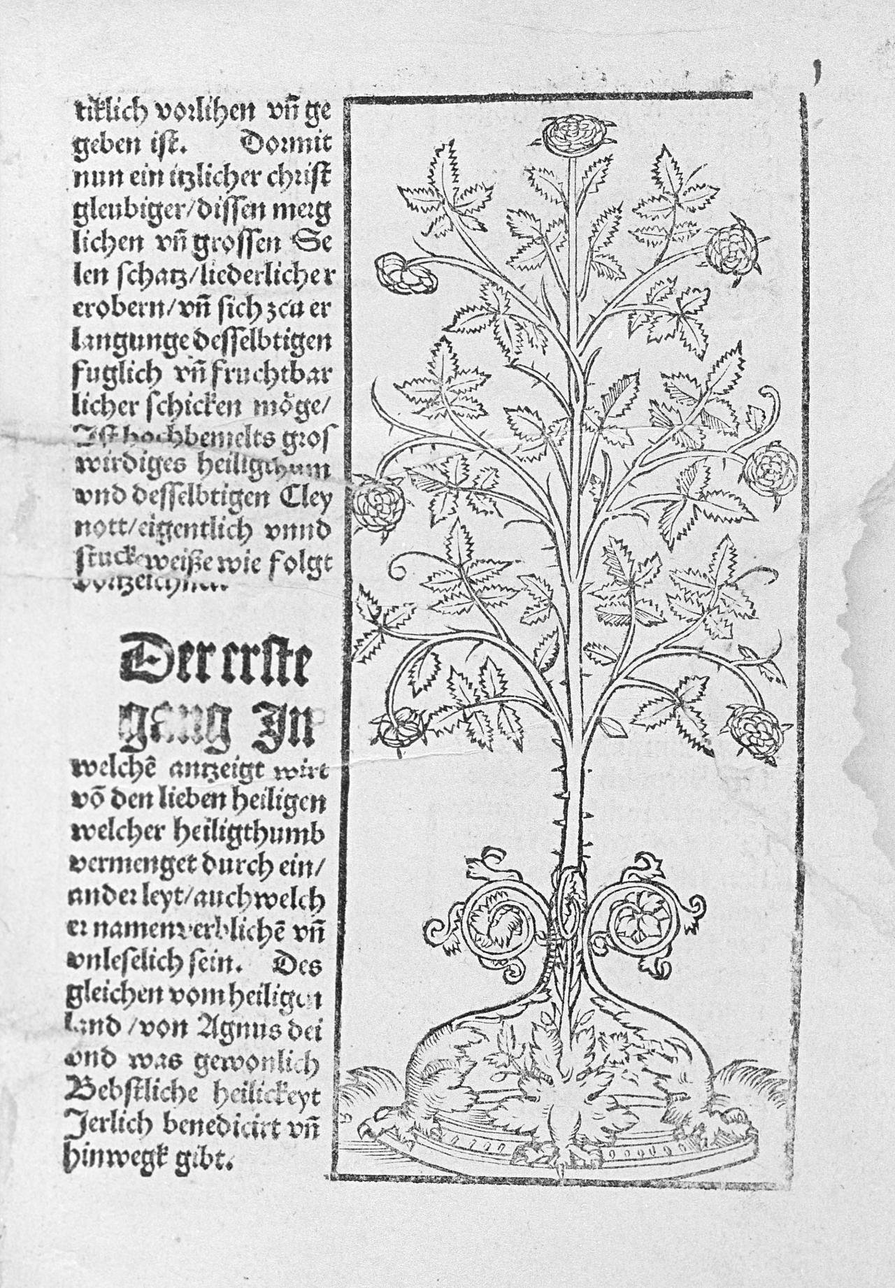 42 ‘Der erste | gang in | welche[m] antzeigt wirt | vo[n] den lieben heiligen welcher heiligthumb vermenget durchein/ | ander leyt/ auch welch | er namen verbliche[n] un[d] | unleselich sein. Des | gleichen vom heiligen | land/ von Agnus dei | und was gewonlich | Bebstliche heilickeyt | Jerlich benedicirt un[d] | hinwegk gibt’.