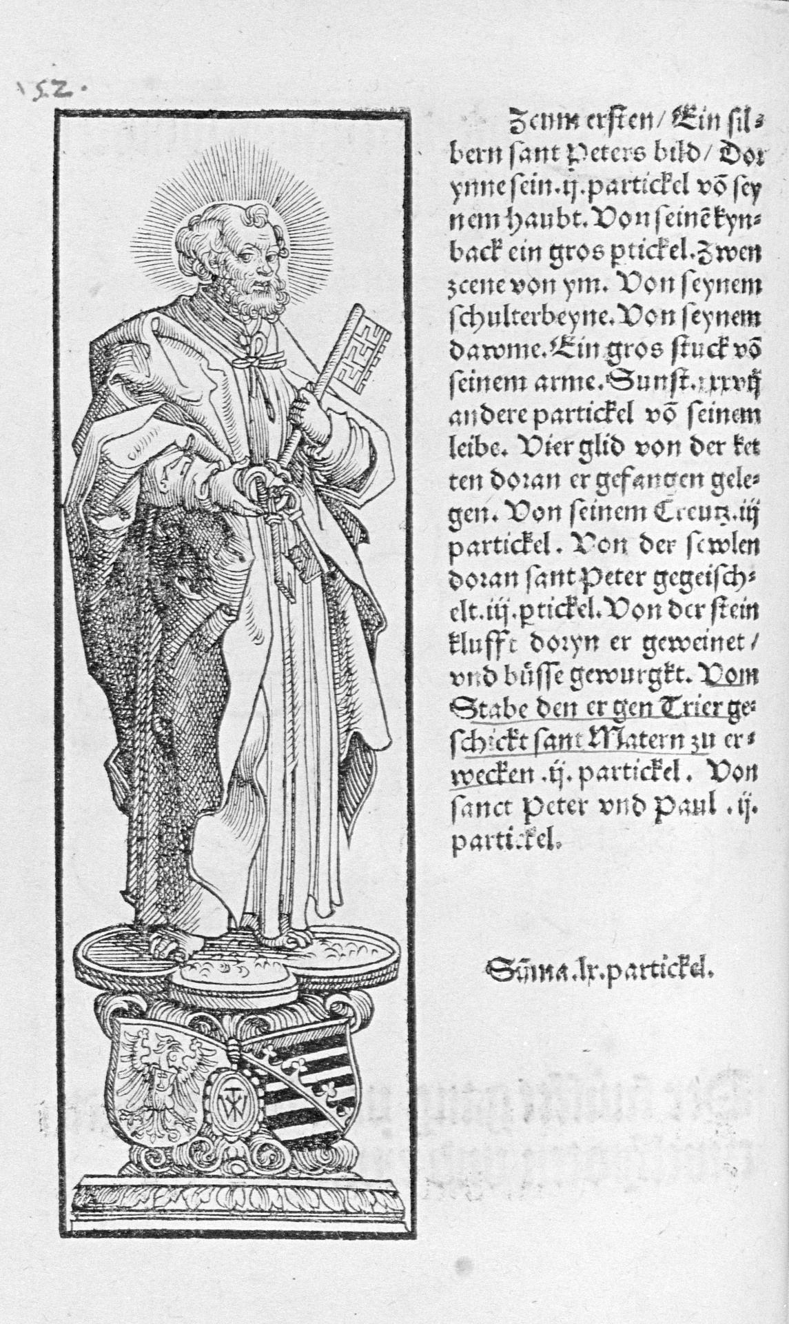 50 Halle Relic Book, 1520, fols E3r–E3v; Hallesches Heiltumsbuch (Halle Relic Book), c.1526, Hofbibliothek, Aschaffenburg, MS. 14, fols 87v–88r; Halm & Berliner, p. 32, no. 76.