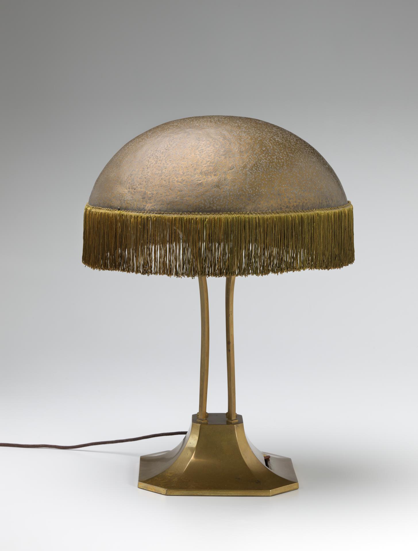 Loos designed a number of variants to this model, in both copper and brass and some with gathered cloth as well as silk fringes. Interestingly, the silk fringe colour on copper examples also appears to complement the metal tone. Some examples also have a traditional hand beaten treatment to their shade, making reference to Loos’s concern for craftsmanship and truth to materials. The lamp comes from the collection of an old Viennese family, in which it has remained for three generations, and makes a highly important addition to the Gallery’s internationally renowned holdings of Viennese modernism.