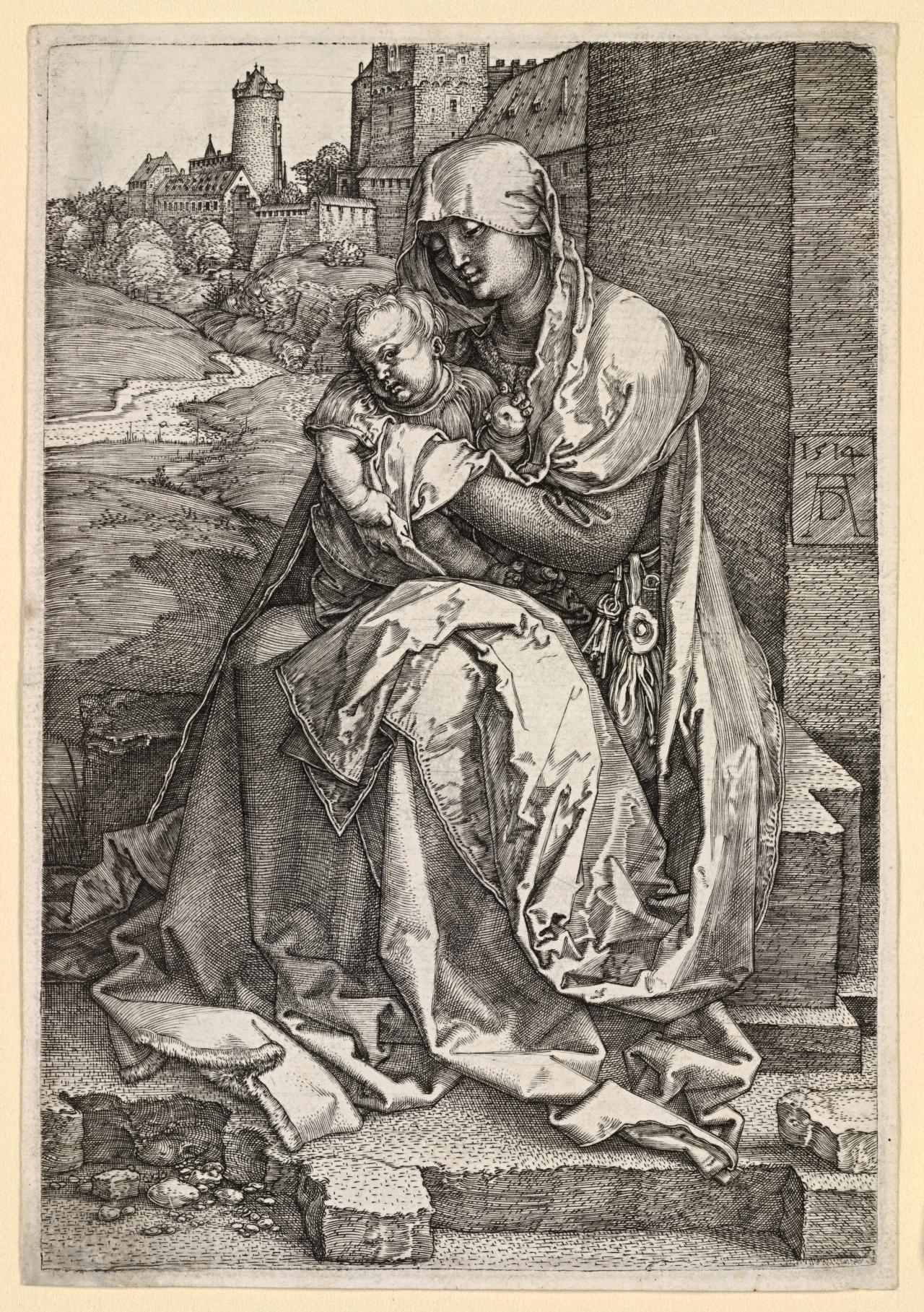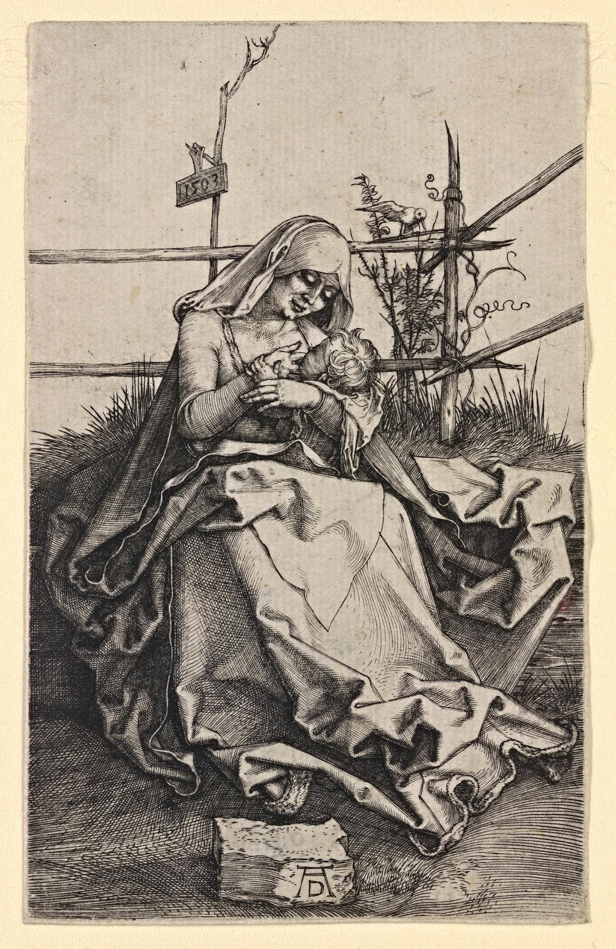 8 Dürer’s mother’s declining years from 1511 on coincide with a recurring exploration of the Mother and Child theme in her son’s work. For the year of her death, 1514, at least six drawings of the theme can be recorded, and two engravings: The Virgin on the Crescent with a Diadem (B.33) and the Madonna by the Wall (B.40).