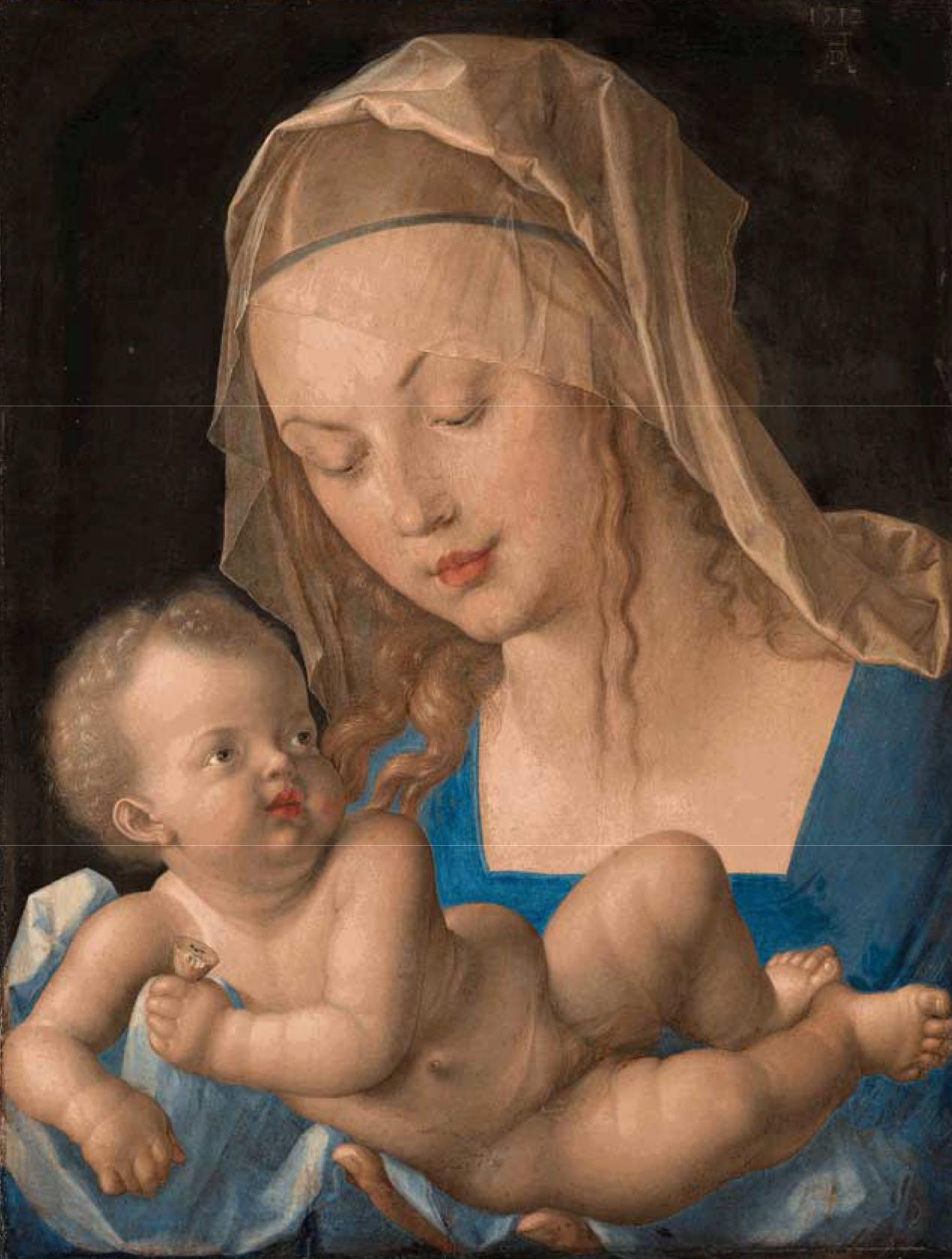 Our knowledge of Dürer’s approach to Mary is largely drawn from his visual images, for neither in his journal, nor in his letters and art theoretical writings, does he broach the subject. However, some written clues survive. The following verse, written in 1510, conveys a sense of his personal beliefs regarding the Virgin’s role in relation to both Christ and the devotee: