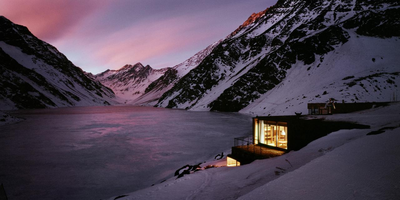 A striking example is Chalet C7, in Portillo, Chile, by Max Núñez and Nicolas del Rio, which depicts a bunker-like chalet at 2990 metres above sea level ‘wrapped’ by the Inca Lake and the Andean Tres Hermanos Mountains. With this image Attali reveals her fascination with architecture that takes cues from its surroundings. She understands that the extreme landscape – formed by altitude, snow, wind – is the focus here, and that it not only defines the formal context of the architecture but highlights nature’s relationship to the human psyche. There is a magnetic allure to these wild natural places that has created a desire for architects to build at locations such as this; Attali’s images attempt to convey the scale, beauty and magnetism of these places.