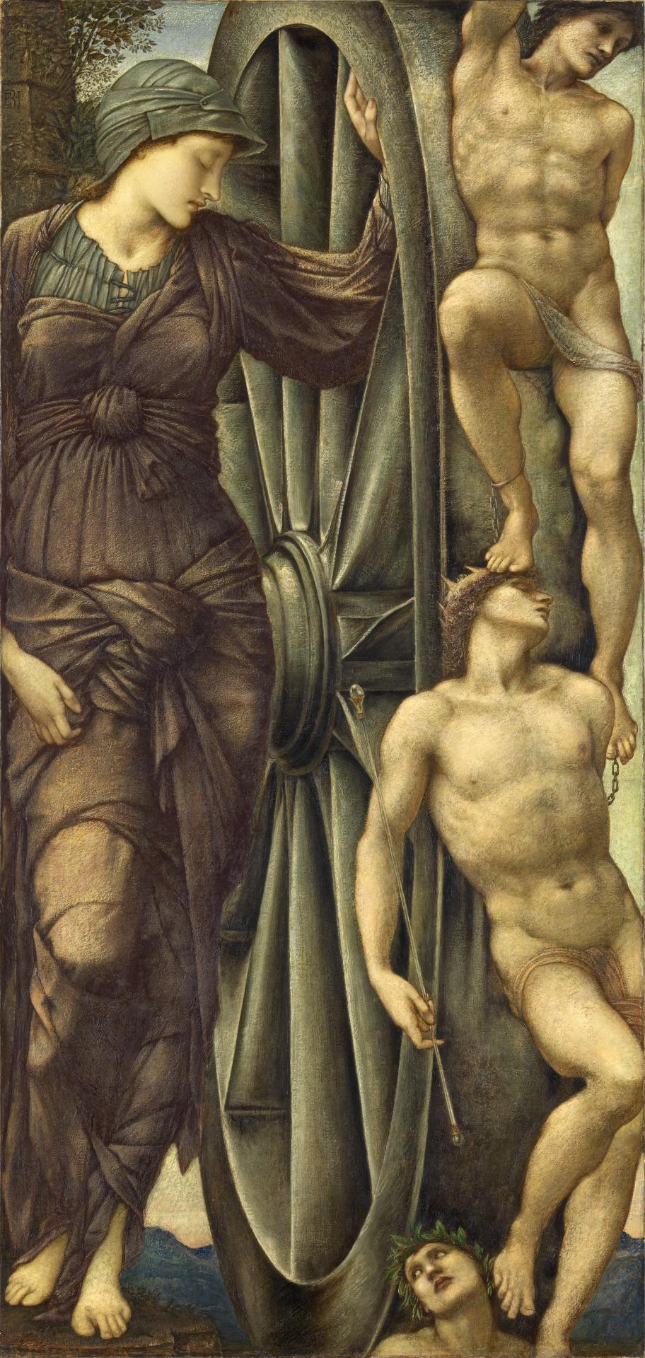Contemporary critics characterised Burne-Jones’s portraiture as depicting his own perception of beauty rather than capturing a sitter’s likeness. In 1894 The Times asserted that the portraits by this artist ‘do not show his sitters as the world sees them, but as he sees them, and to find portraiture in them one has to see as much as possible with his eyes’.1 The Times, 28 April 1894, p. 10. As Associate Professor Alison Inglis, School of Culture and Communication, University of Melbourne, has noted, even though the famous actress Lillie Langtry served as the model for Fortuna in The Wheel of Fortune (fig. 2), of which a number of versions exist, it is admittedly difficult to discern any clear likeness to Langtry in the shadowed features of the goddess.2 See Alison Inglis, ‘Deathless beauty: Poynter’s Helen, Lillie Langtry and high Victorian ideals of beauty’, in Angus Trumble et al., Love and Death: Art in the Age of Queen Victoria, Art Gallery of South Australia, Adelaide, 2001, p. 82. While this depiction was not intended as a portrait, it is insightful to note that despite the opportunity to capture Langtry’s well-known, robust appearance, Burne-Jones returned to the depiction of his own ideal type. His sitters were typically shown with an enigmatic gaze, which reflected his belief that external appearances are incapable of portraying the inner qualities of a person.3 Refer to comments by the artist recorded in Georgiana Burne-Jones, Memorials of Edward Burne-Jones, vol. 2, Lund Humphries, London, 1993, pp. 140–1 (first published in 1904 by Macmillan and Co. Ltd). Further discussion surrounding Edward Burne-Jones’s perspective on portraiture can be found in Martin Harrison & Bill Waters, Burne-Jones, Putnam, New York, 1973, p. 129. In 1877 Henry James highlighted this repetition, aptly noting Burne-Jones’s figures ‘conform to this languishing type with a strictness which savours of monotony’.4 Henry James, ‘The picture season in London, 1877’, first published in Galaxy, Aug. 1877 and reprinted in John L. Sweeney (ed.), The Painter’s Eye: Notes and Essays on the Pictorial Arts by Henry James, Rupert Hart-Davis, London, 1956, p. 146. As asserted by a contemporary critic for The Architect and Contract Reporter, the perception at the time was that regardless of appearance to reality, Burne-Jones ‘sets before us his ideals of beauty’.5 The Architect and Contract Reporter, 11 Nov. 1898, p. 316.