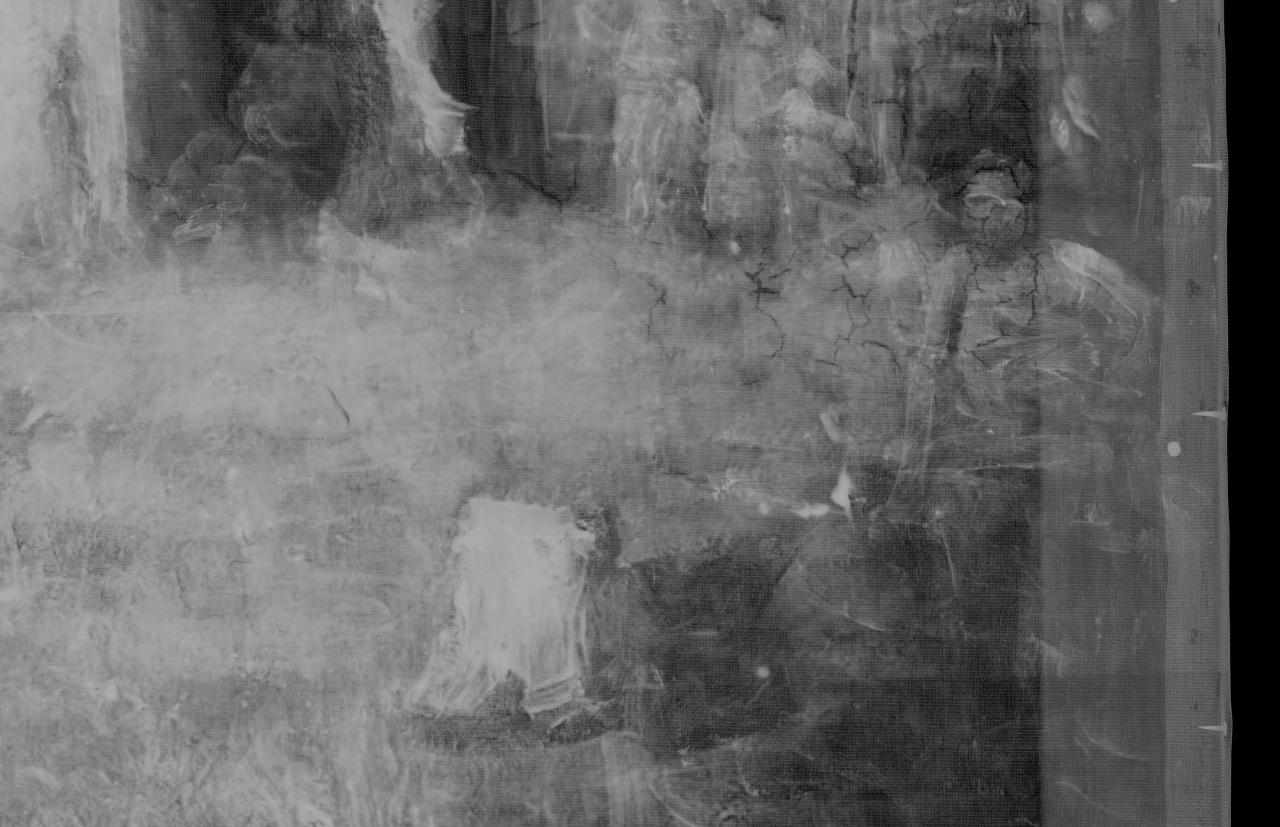 Taking an X-ray of a painting is a remarkable and exciting process, because X-rays have the potential to reveal aspects of the creative process that are hidden from view, and not normally recorded during the making of an artwork. It is especially thrilling to uncover a completely different underlying composition. The recycling or repurposing of a canvas or panel might be motivated by practicality or economic necessity, particularly during times of war when rationing rendered art materials relatively scarce. More commonly, X-rays reveal more subtle compositional changes as the original idea is developed and refined during the process of painting, providing precious insights into the artist’s intention and working method.
