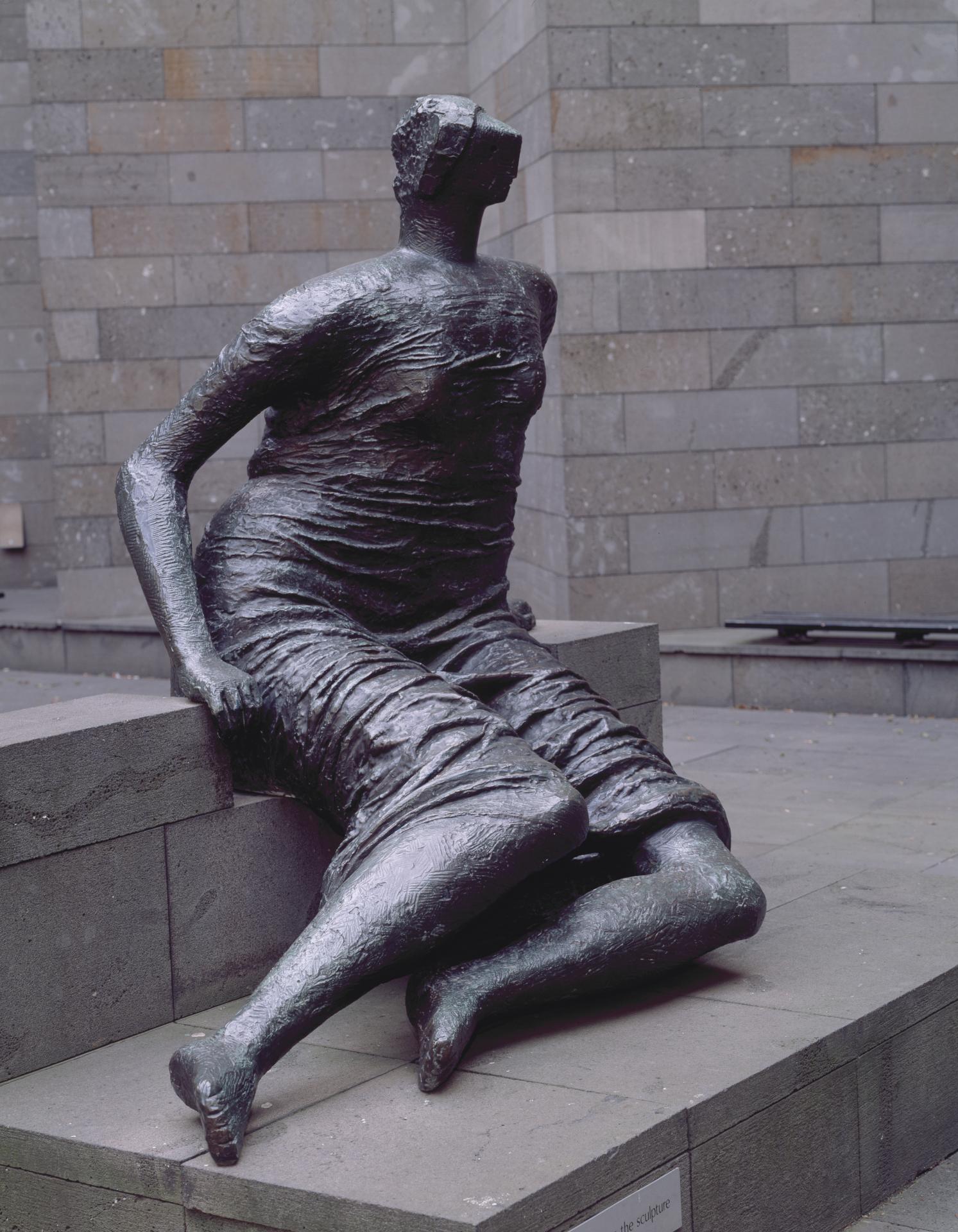 On 3 June 1960 the National Gallery of Victoria’s deputy director, Gordon Thomson, announced to the public the Felton Bequests’ Committee recent acquisition of Henry Moore’s Draped seated woman (fig. 1). His press release stressed the acquisition’s signal importance for the Gallery, noting, ‘The arrival of this work in Melbourne is an historic event of great importance. It is the first large-scale work to be imported for almost thirty years, and is unquestionably the finest piece of sculpture in this country’. To explain the artist’s intentions in making the piece, Thomson quoted Moore’s own comments of some twenty years earlier: