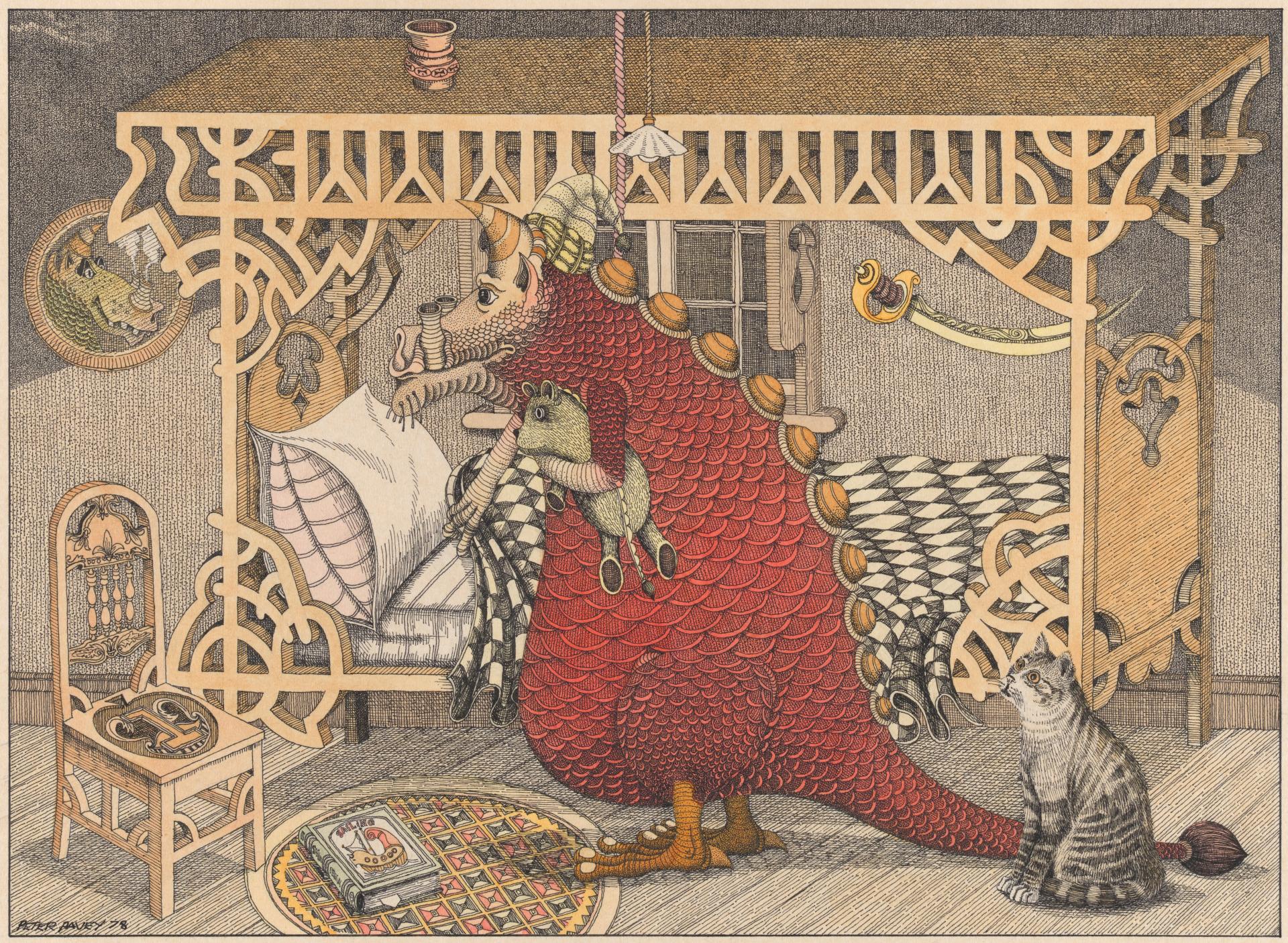 The drawings were generously donated to the National of Victoria in 2014 by Albert Ullin OAM, who collected the works over his long career in the children’s book business and wished them to find a permanent home at the Gallery. A selection of his donation is displayed in Bunyips and Dragons. In 1960 Ullin opened the Little Bookroom in Melbourne’s Metropole Arcade, on the corner of Bourke and Elizabeth Streets, the first Australian bookstore dedicated to children’s literature, which he managed for almost forty years. The shop became a well-known meeting place for young illustrators, including Ron Brooks and Peter Pavey. As Ullin established friendships with Brooks, Pavey and many others, he began to collect their drawings and built up an extensive collection through purchases and gifts. The first works he bought were two of Brooks’s drawings for The Bunyip of Berkeley’s Creek (1973), and two of Pavey’s illustrations for One Dragon’s Dream (1978). Over the course of its life, the Little Bookroom expanded and moved to different premises in Melbourne, and now continues to do business through two branches.