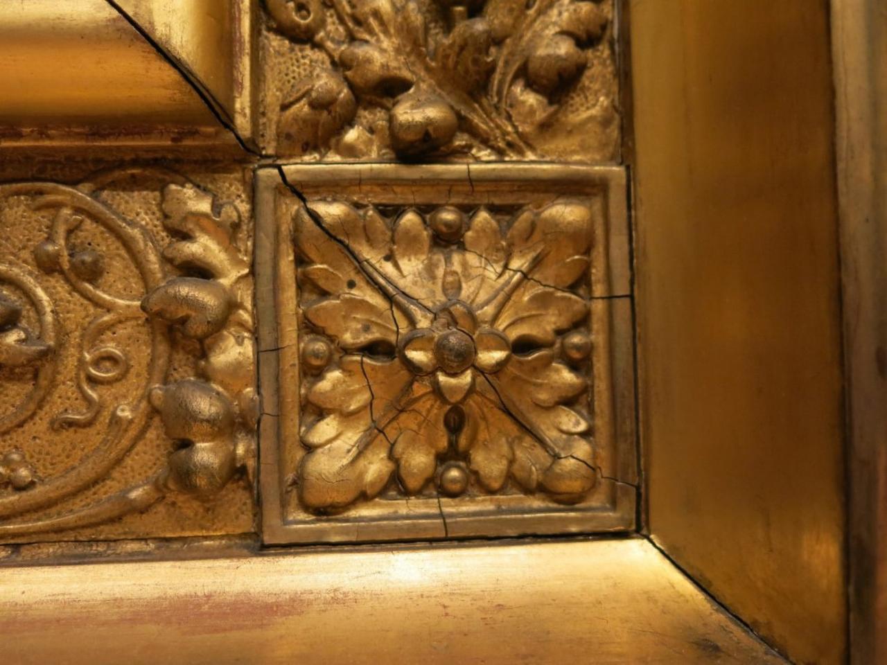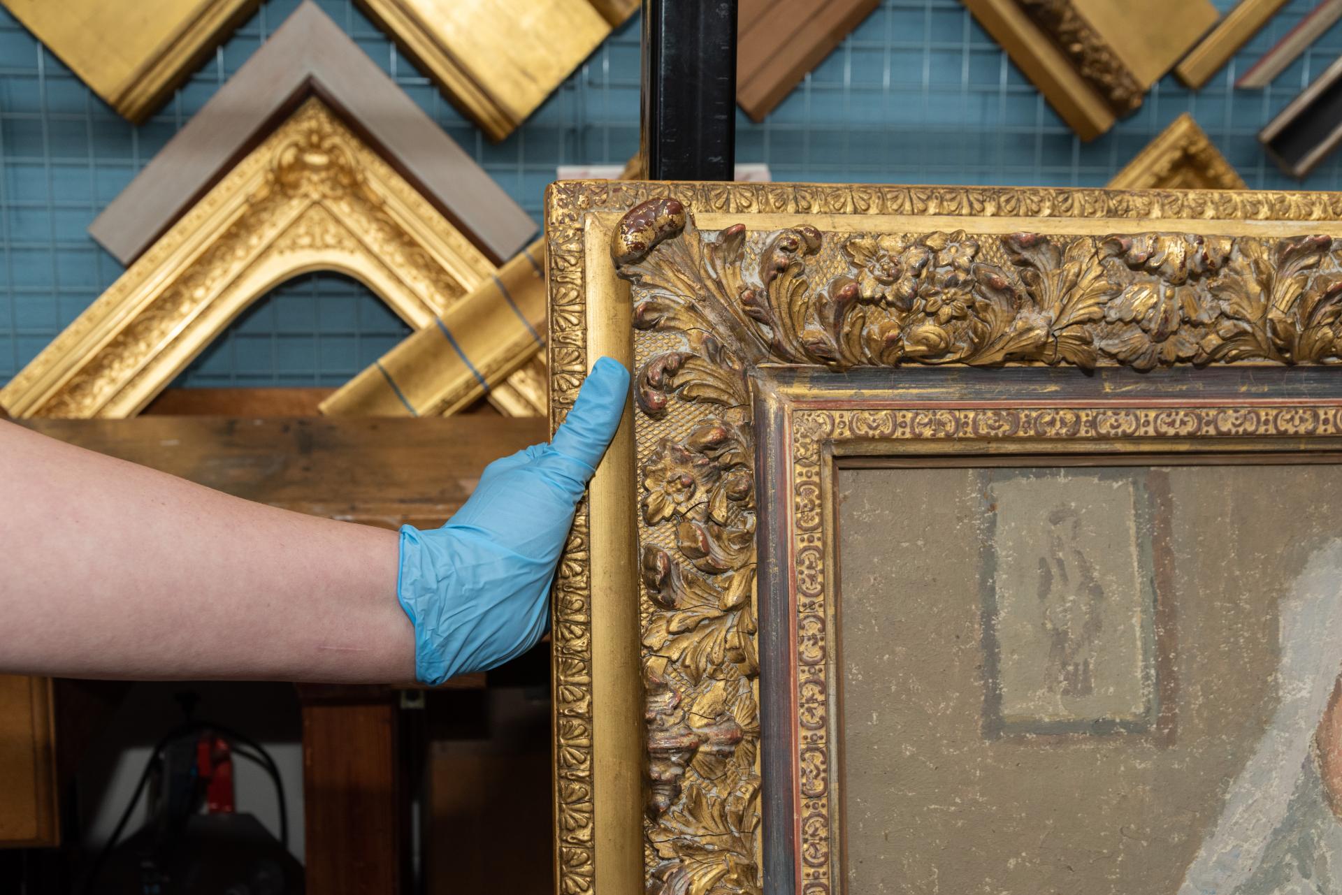 Frames are multi-layered objects, traditionally comprising a wooden structure, on to which ornament is added (either carved or created in a mould), followed by a gilded surface finish. There are many variations in the methods and materials of manufacture depending on the period and origins of the frame. Most picture frames remain functional items, providing a visual and protective border for the artwork within them. Inevitably, picture frames receive more wear and tear, as well as exposure to greater extremes in temperature and relative humidity, than the works that they house, which are protected by the frame, glazing and backboard.*A board applied to the back of the frame to protect the painting from physical and environmental damage.