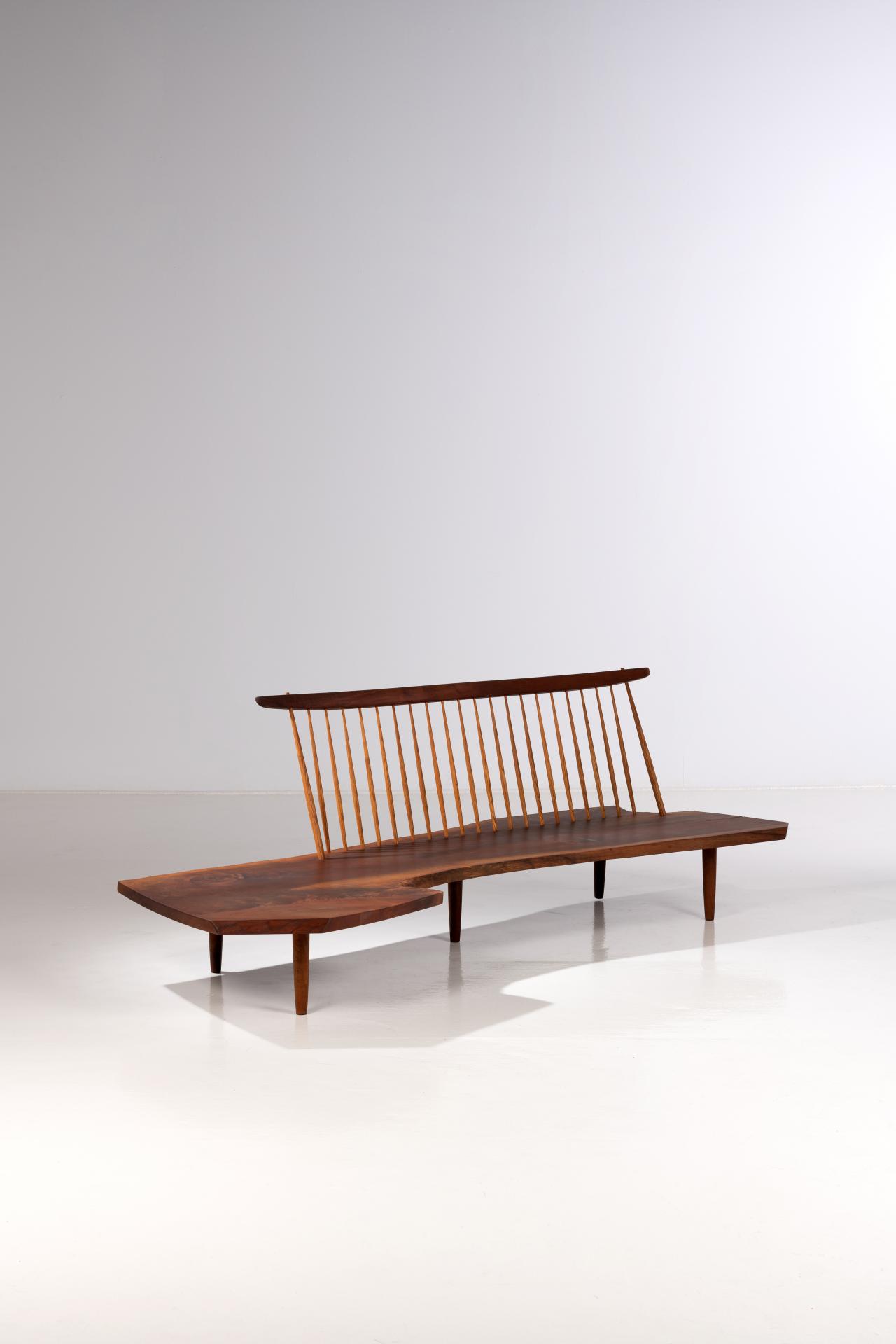 Conoid, bench is representative of Nakashima’s desire to work with nature, not against it, and to reveal the hidden beauty and ‘fallen majesty’ of the mighty walnut tree it was created from.