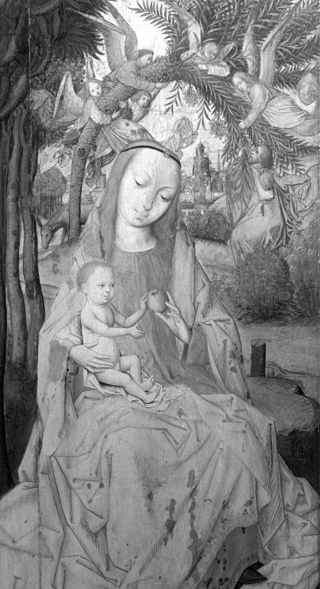 27 There are not many infrared photographs of works by this master available, and so we are basing our arguments on examinations of the Virgin and Child at the Musée des Beaux-Arts, Lille, and the Virgin and Child crowned by two angels at the Groeninge Museum, Bruges.