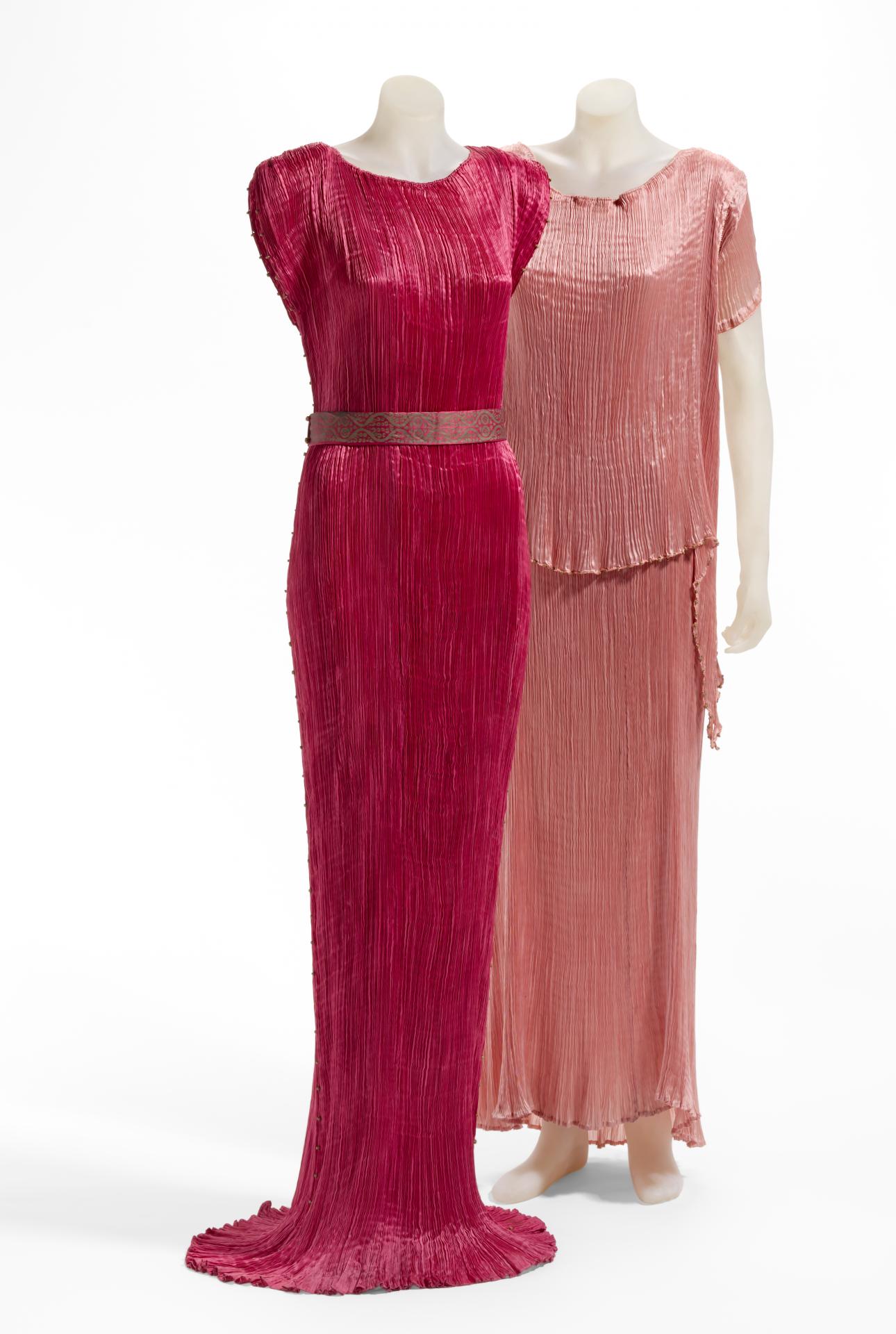 Fortuny’s silhouettes were uncluttered, designed to drape over an uncorseted body and drew from a range of non-Western archetypes. Like other early twentieth-century designers Paul Poiret and Chanel, his work sought to free the body from the restrictive dress conventions of the previous century.