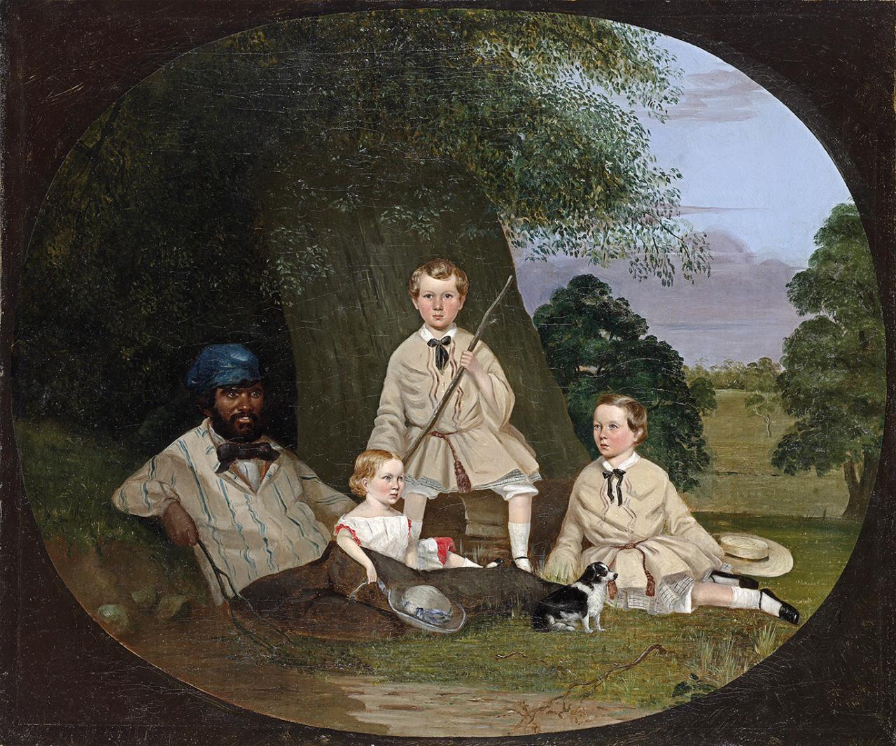 11 Mrs Adolphus Sceales with Black Jimmie on Merrang Station, 1855–56, in the National Gallery of Australia collection is a more sombre and stratified image of interracial coexistence.