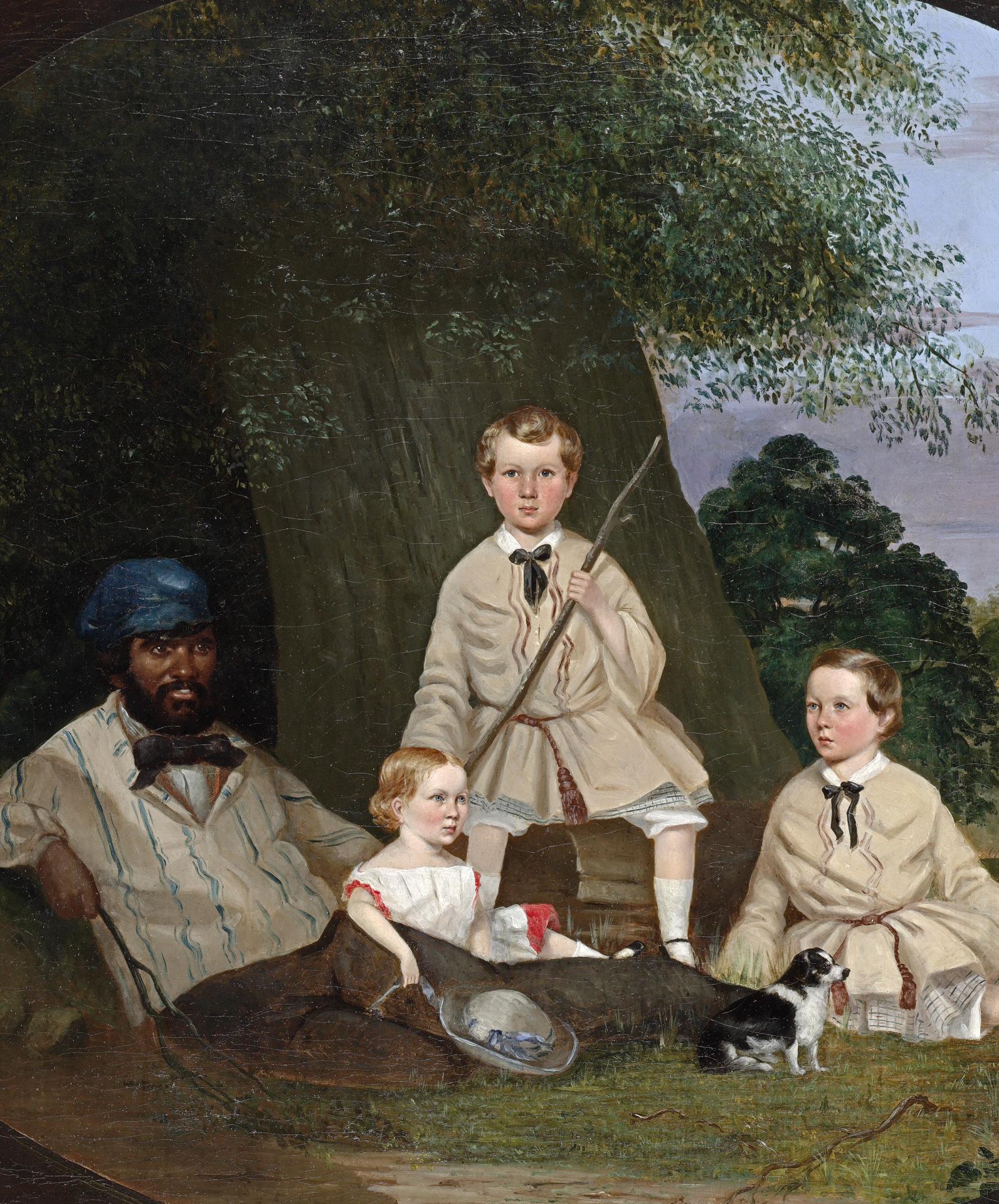 Commissioned by the Ware family and painted from life, the portrait has a vitality and integrity born of truth. Its most distinctive feature is the strong relationship between the Aboriginal and European sitters. The eldest Ware child, George, sits at the symbolic head of the group, his brother William is to his left and sister Harriet and the Mopor man Jamie to his right. The close relationship between Harriet and Jamie is obvious and the absence of the children’s parents implies the trust that Jamie was afforded and cements his surrogate position within the family unit.1 The authors thank John Jones for providing documentation of Jamie Ware’s death certificate. The title of the painting that is the focus of this article has evolved as recognition of Jamie Ware’s identity and acceptance within the Ware family have come to light as a result of Jones’s research. Originally, the work’s ascribed title referred to Jamie as ‘the Aboriginal servant’, followed by ‘the Aborigine Jamie Ware’, indicative of his separateness from the Ware family (see John Jones, ‘The Ware family of Koort-Koort-Nong, Minjah and Yalla-y-Poora in the Western District of Victoria and their patronage of the artists Robert Dowling and Eugène von Guérard’, National Gallery of Australia, 1997, unpaginated).