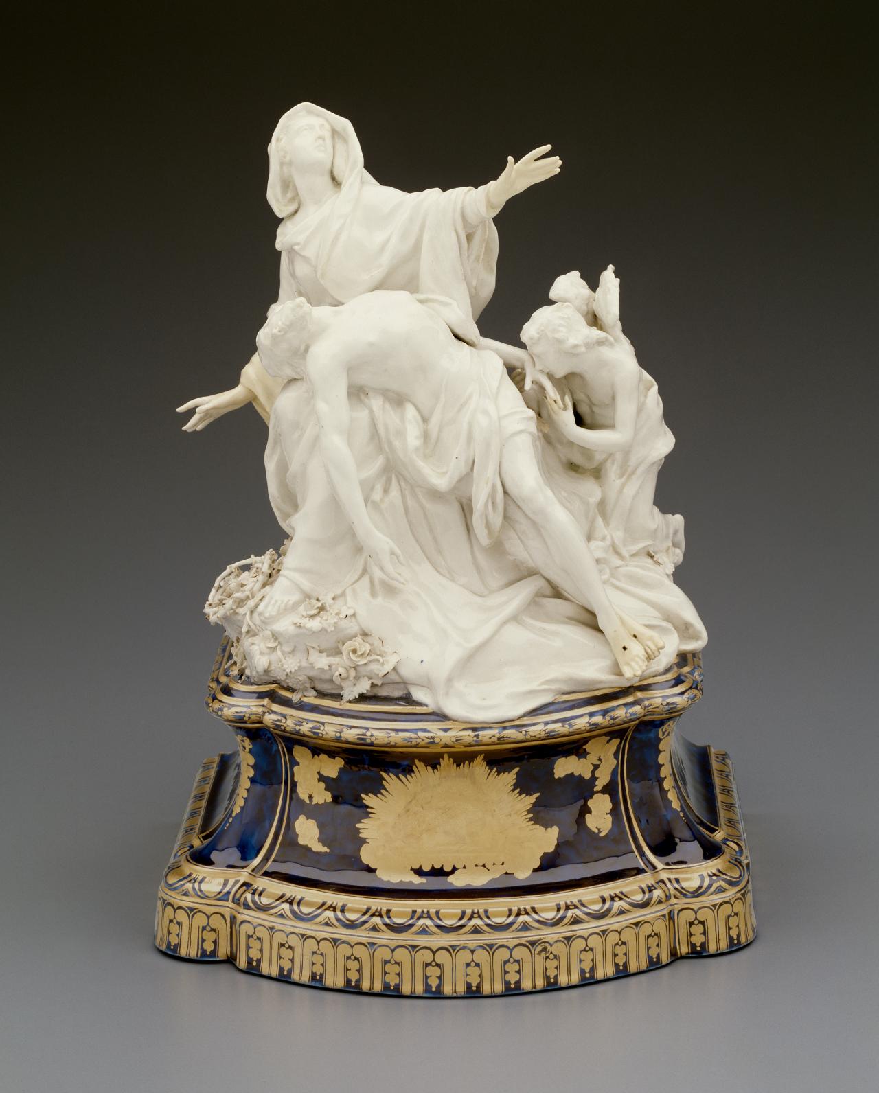 Porcelain sculpture may be considered the quintessential eighteenth-century European art form. The ubiquity of porcelain today can mask its significance in the eighteenth century; whereas we associate the material primarily with commercially manufactured utilitarian wares, in the eighteenth century porcelain was a material with enormous symbolic significance. Mastering the technology required for the production of hard-paste porcelain was a major scientific and technical innovation with important economic effects. This new wonder material – translucent, infinitely malleable, possessed of lustrous shine – immediately assumed a vital representational role in the culture of the Saxon court where Augustus the Strong, Elector of Saxony and King of Poland, an ardent collector of Asian porcelains, financed the pursuit of the porcelain Arcanum. The products of the factory founded by Augustus at Meissen in 1710 were the proof of Saxon scientific, economic and cultural superiority, and gifts of porcelain made by the court to the princes of Europe served to advertise Augustus’s power and prestige.1 Maureen Cassidy-Geiger (ed.), Fragile Diplomacy: Meissen Porcelain for European Courts ca. 1710–63, Yale University Press, New Haven and London, 2007. Very quickly, other European rulers began striving to establish porcelain manufactories of their own; the medium rapidly began to reflect an absolutist prince’s glory and, through mastery of its production, served to demonstrate their right to power.