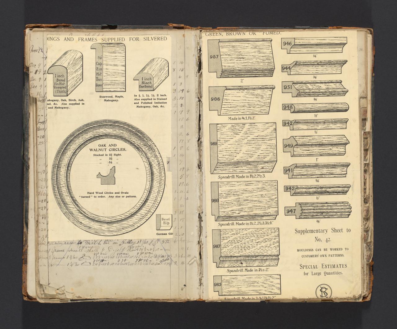 One of the catalogue pages appears to bear the emblem of London frame maker Richard Scully, as reproduced in Jacob Simon, The art of the picture frame, National Portrait Gallery London, 1996, p.45