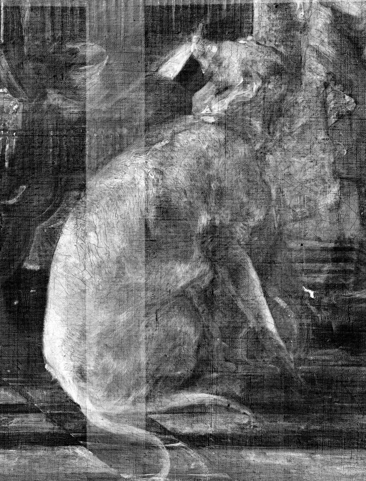 X-radiography is one of the most important tools for diagnosis of the structural condition of the painting and for examination of the artist’s painting technique. For the former it enables quick and comprehensive identification of areas where the original paint has been lost or damaged, and for the latter it gives a richly illustrative insight into the artist’s brush technique and aspects of the image which may have been changed or suppressed at a later stage of the painting process (pentimenti).
