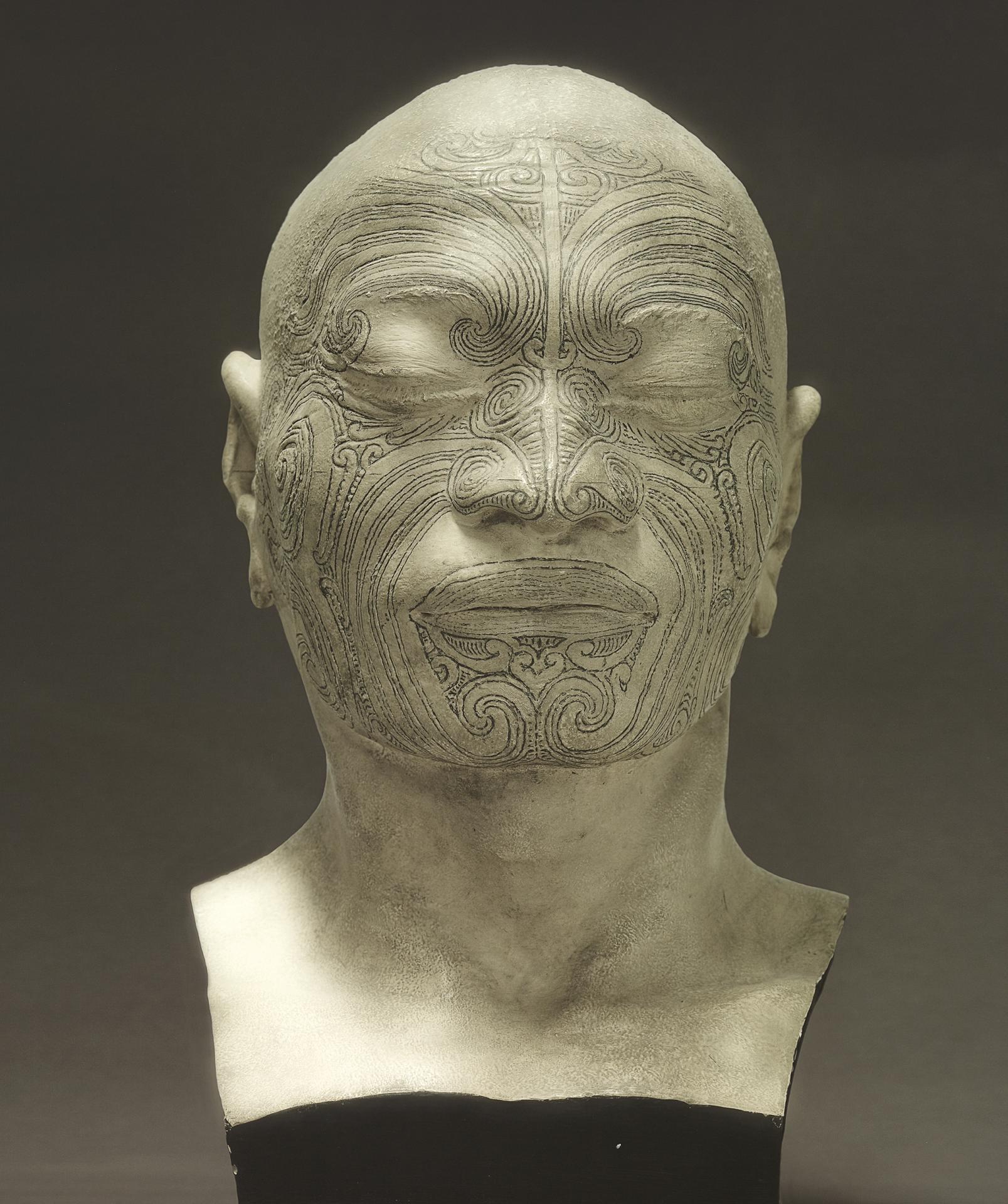 Portrait of a life cast of Matoua Tawai, Aotearoa New Zealand 2010 is a key work from the series. The large colour image depicts the cast of a young Maori man, and is marked by beautiful, intricate lines created by the grooves of the Tā moko, or tattoos, that adorn his face. Although the subject of the cast is identified on the accompanying nineteenth-century label as Matoua Tawai, this may not be accurate as the information gathered at that time was often incorrectly recorded, and in this instance the original nineteenth-century documents are no longer extant. Consequently, identifying the sitter remains problematic. Irrespective of this, the casts are a particularly poignant expression of colonial objectification of the people of the Pacific.