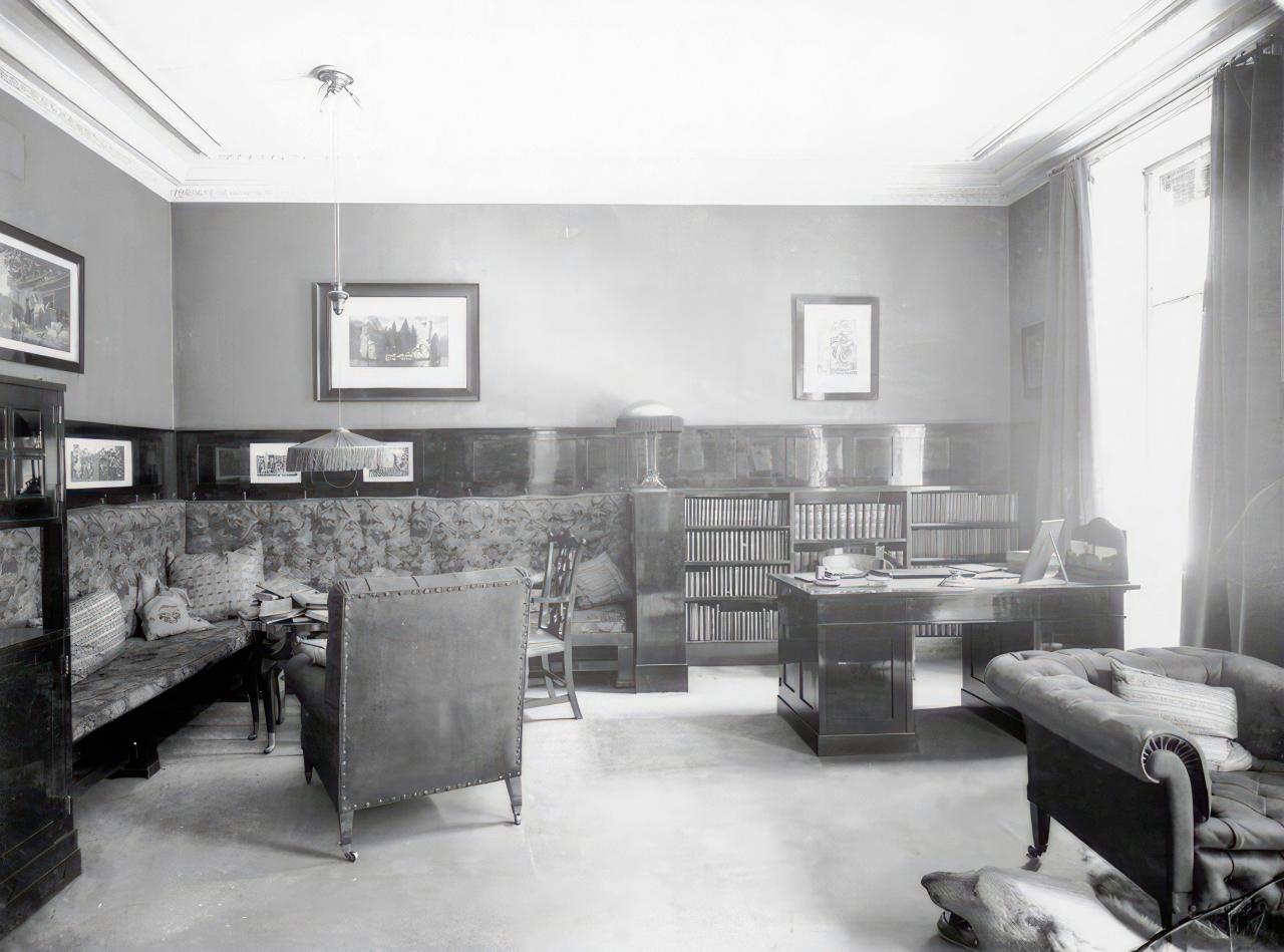 Photograph of the apartment of Michael Leiss, designed by Adolf Loos, 1903, showing the same model lamp in the middle.