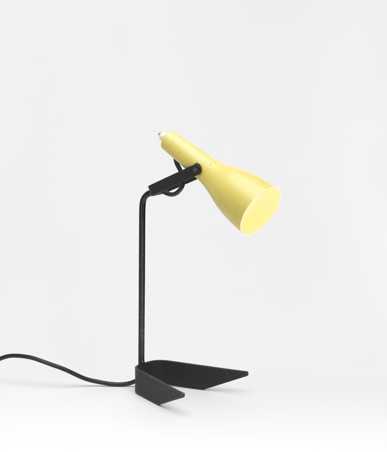 Decisions about globe choice are also made by examining the history of technological advances; for example, frosted globes were not used prior to the 1920s. The lamp’s display location needs to be considerate of the light falling on nearby artworks to ensure light-sensitive artworks such as watercolours are not affected. In more recent examples of lighting acquisitions, research into contemporary advertising material can reveal which globes the designer had in mind. For example, Clement Meadmore’s Calyx, table lamp is advertised as requiring a regular globe and specific wattage to focus the light in its narrow shade, linking the globe choice to the design of the lamp.