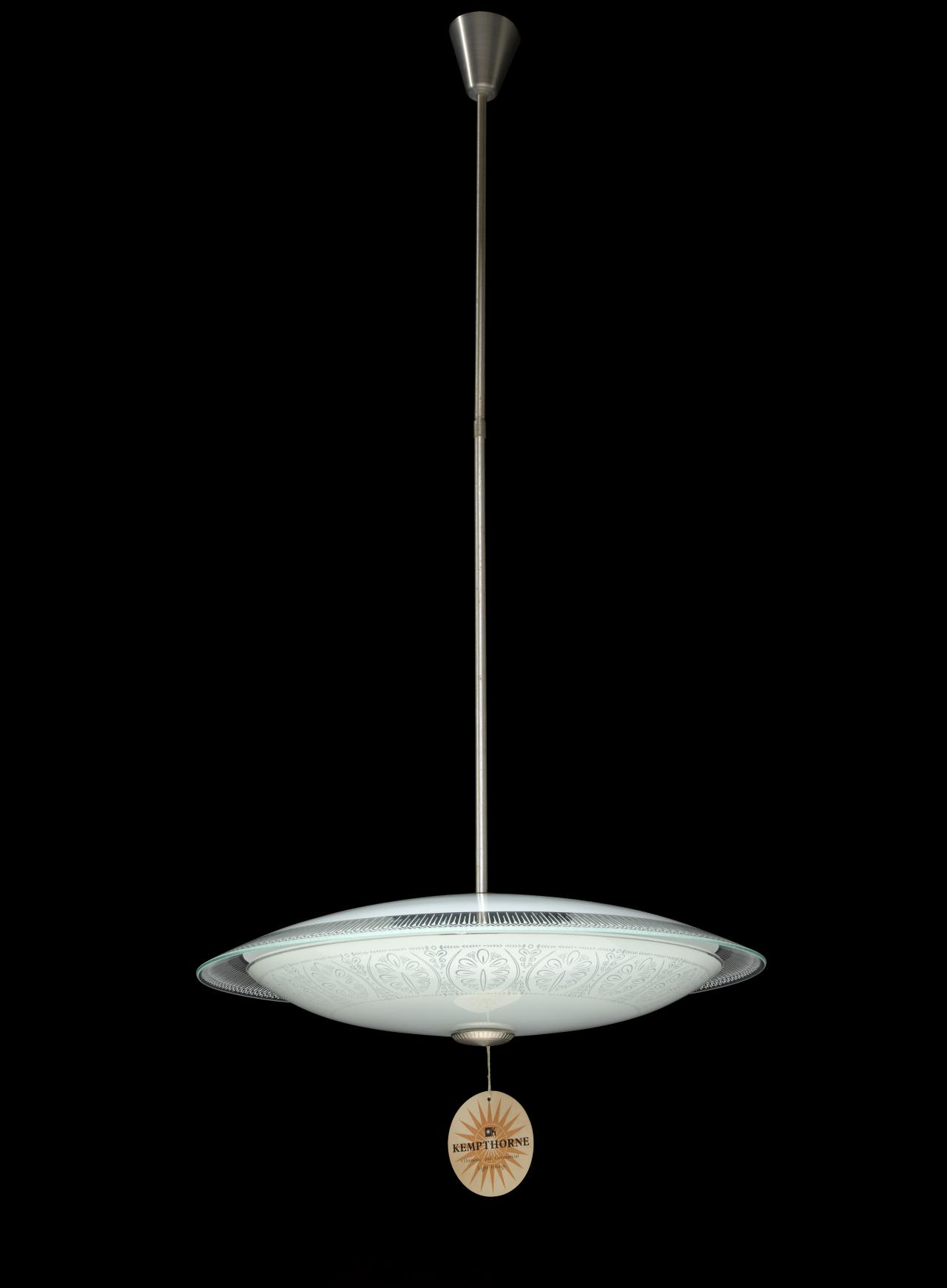 If we’re fortunate enough, an acquisition may even come with its original packing box, such as the Kempthorne K3650 Filagree, pendant light, giving all sorts of information that would otherwise not be easily found.