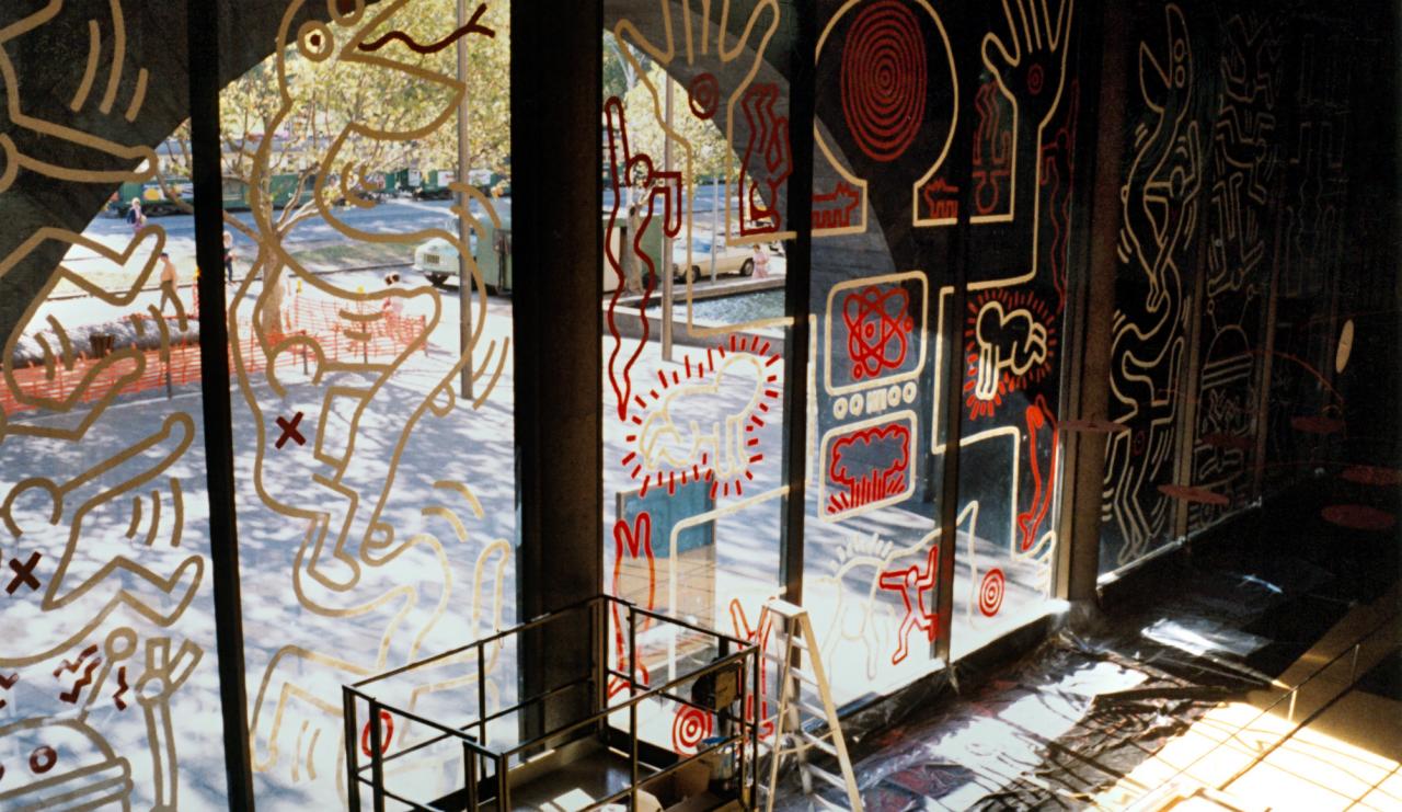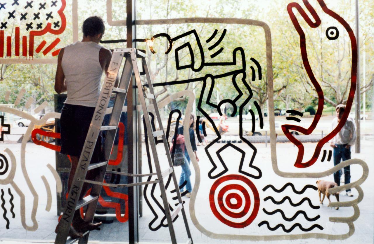 On Tuesday 21 February 1984 Keith Haring painted the entire base design of the NGV mural,