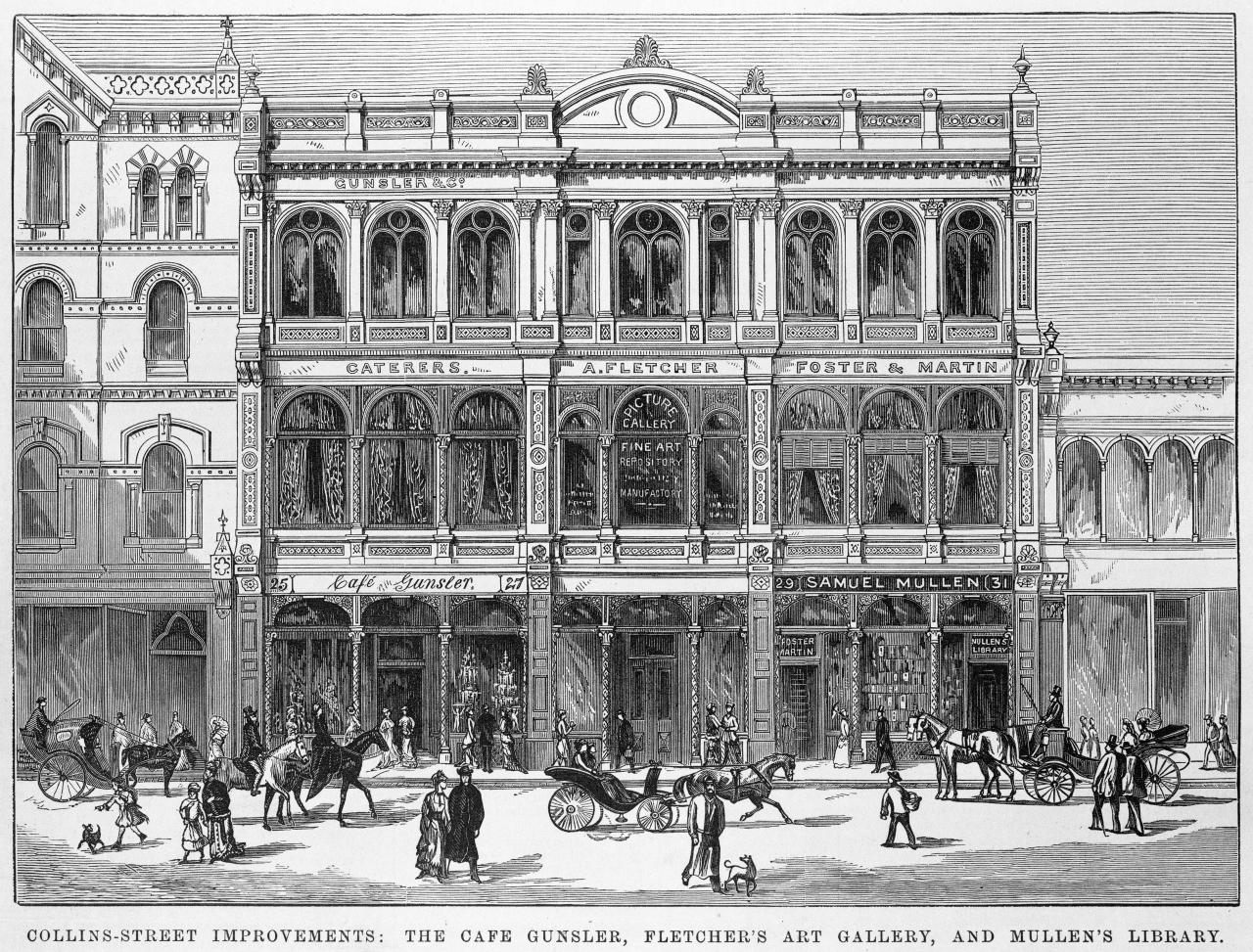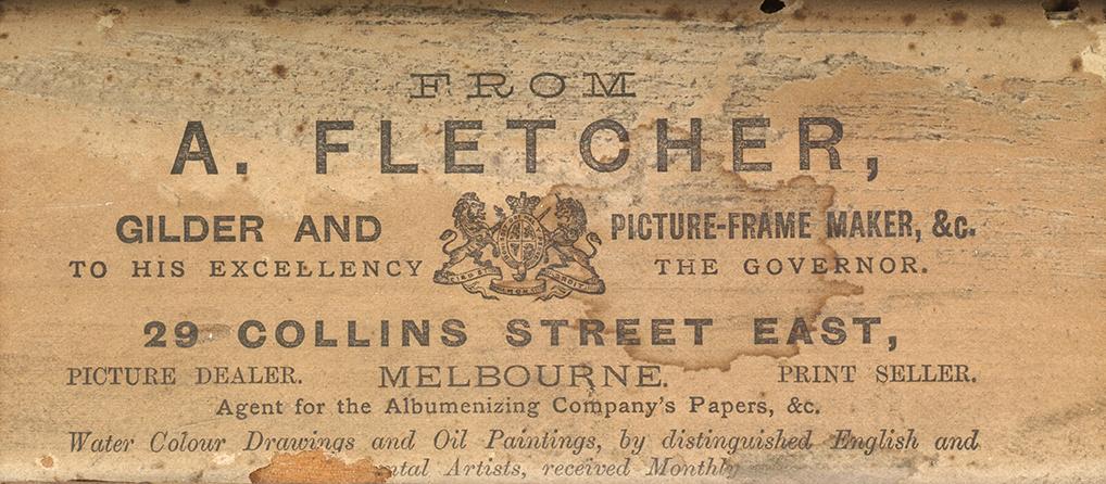 Originally from Scotland, Fletcher was a photographer of note in New Zealand before migrating to Melbourne in 1870. Over the next 20 years his business activities expanded from a small-scale framer, to one of the city’s most prominent and influential art exhibitors and dealers. Fletcher’s business focus in the 1880’s was on the exhibition and sale of British and European paintings and prints, although there is evidence that he continued the framing and gilding aspects of the business.