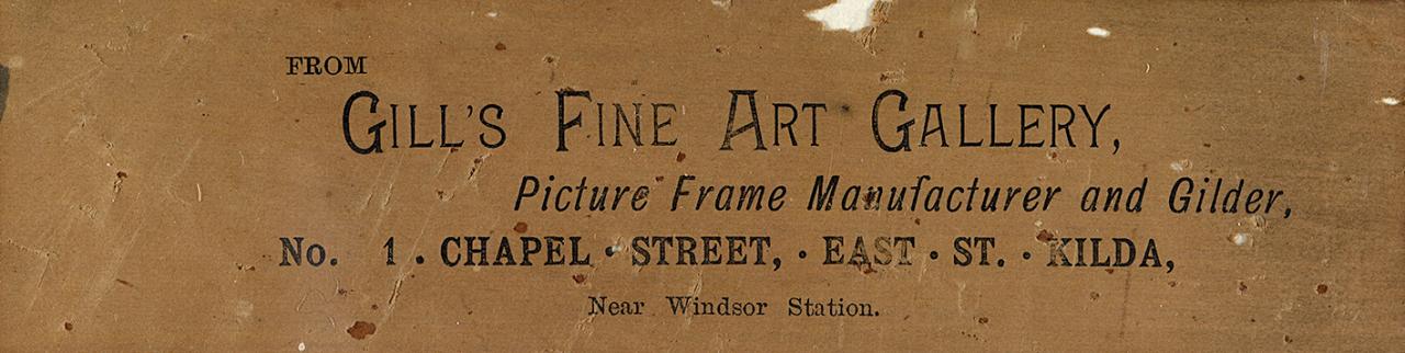 For over 50 years, Albert Gill and his sons Alfred Naylor Gill and Albert Luther Gill, operated farming and art-related businesses in the Melbourne suburbs of South Yarra, Prahran and St Kilda. Gill’s Fine Art Gallery advertised as a picture frame manufacturer and gilder, and the family also imported frames and mouldings. Albert Senior, also known as Alberto Gillini, and Alfred Naylor were also both artists, who presented a combined exhibition of 117 paintings at the Melbourne Athenaeum in 1913.1The NGV collection includes a painting by Alberto Gillini, Swanston Street, 3252-4, purchased in 1955, while several works by Naylor Gill are held by the State Library of New South Wales.,2There are several newspaper accounts of the exhibition, including The Age, 4 June 1913, p.15. Albert Luther also worked in picture framing, later selling paintings and antiques, and was known for holding exhibitions of artists such as Norman Lindsay, Streeton, Bunny, Longstaff and H.S. Power.3The Bulletin, 30 June 1943, p.9 and The Bulletin, 24 June, 1953, p.19. The business’ address in the early twentieth century was at 1 Chapel Street, the current location of the Astor Theatre.