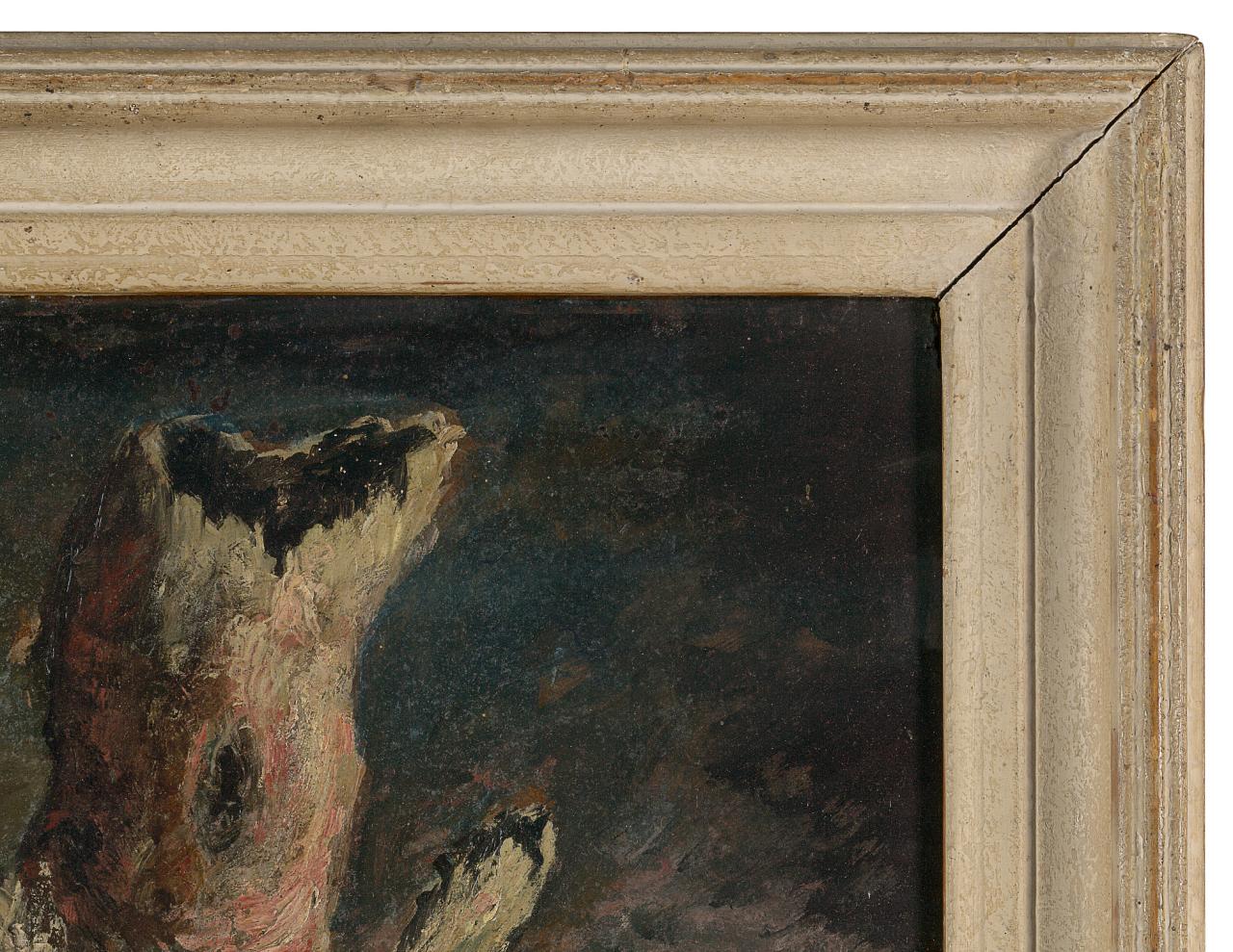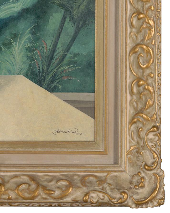Detail of likely original overpainted decorative frame on Adrian Feint A tribute to the night 1950.