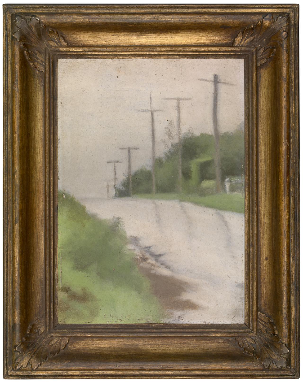 Clarice Beckett Beach Road after the rain (Street scene) c. 1927, in its original frame, attributed to the John Thallon company. It is finished in false gold with a dark patination.