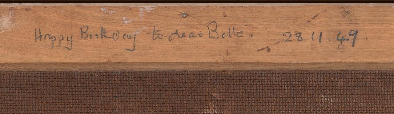 Careful consideration is recommended before taking the step of reframing any artwork, including those from the twentieth century. Could the existing frame be original to the artwork, one chosen by the artist, or even created or finished by the artist? Does the frame relate to the early exhibition of the artwork or is it in some other way significant to the history of the picture? Close examination of the back of the frame can reveal inscriptions or labels that may indicate the frame maker or the exhibition history.4See Holly McGowan-Jackson, ‘What do frame maker labels reveal?’, NGV, 27 July 2021, https://www.ngv.vic.gov.au/essay/what-do-frame-maker-labels-reveal/ If the decision is made to reframe an artwork, and there is a possibility that the frame has significance, we would recommend the frame be carefully labelled and stored for future reference or use.