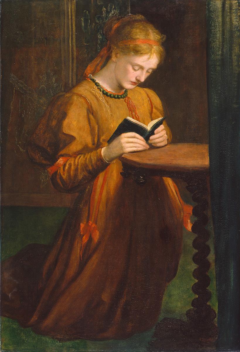 To the Academy exhibition in 1867, Watts sent a painting with the title May (now known as Prayer, 1867 [Manchester Art Gallery], fig. 6). Set at Little Holland House, it shows May kneeling while reading or, as it is sometimes interpreted, praying. This is a genre scene of ordinary life, but the dark and enclosed domestic interior, enhanced by the glowing intense colours, creates a mood of introspection. This scene of modern domestic life is Watts’s first fully fledged depiction of the adopted child of his friends Thoby and Sara. He painted her again in a head study that he worked on from about 1867 until it was exhibited at the Royal Academy in 1869 (Watts Gallery, Compton, Surrey). He was reluctant to exhibit it but the client, who bought it beforehand, insisted and offered a picturesque title. The artist’s reply was firm: