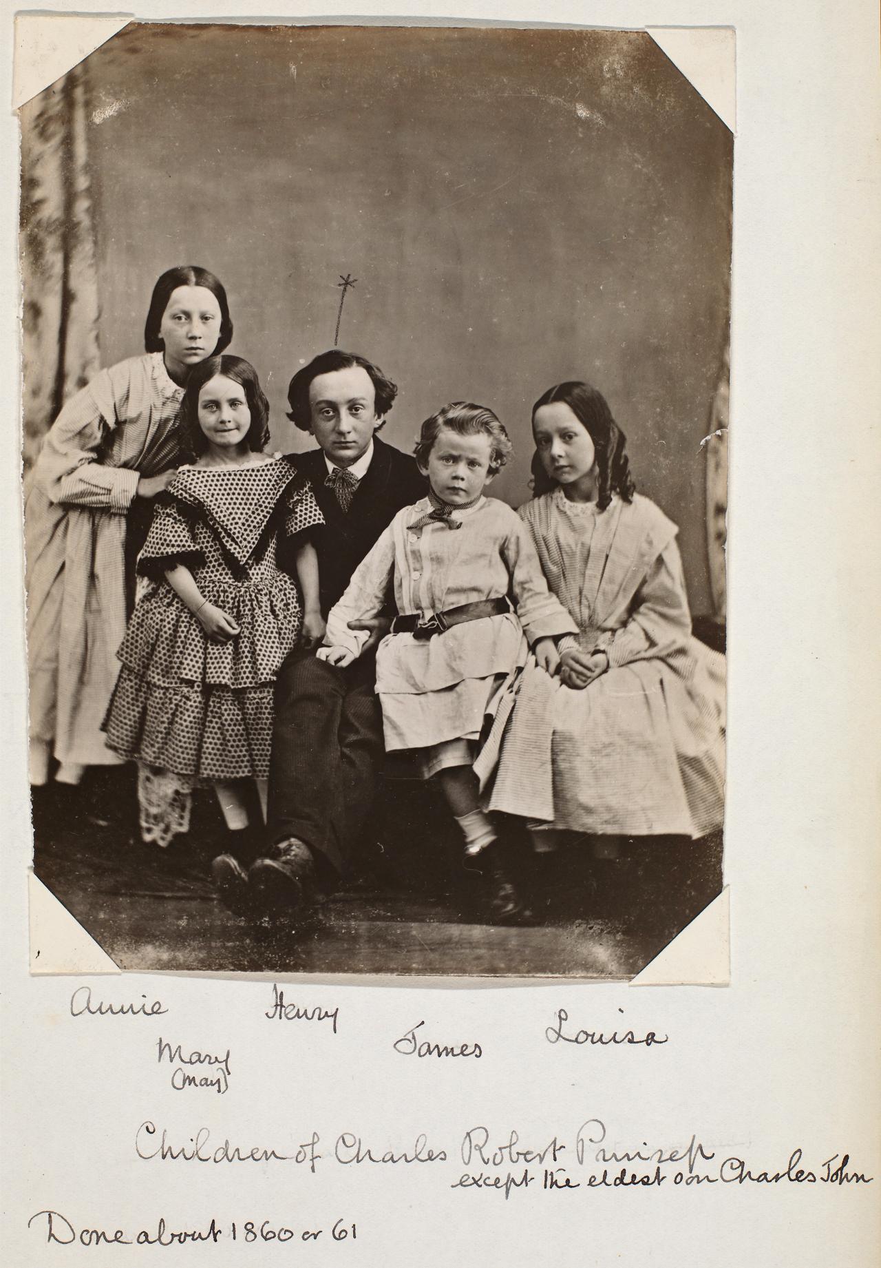 Another visitor to, and later resident of, Little Holland House, May Prinsep, also prompted a succession of painted responses from Watts. The artist knew her well from her youth onwards. She served as a model for his studies of beauty in the later 1860s and as a conduit for his experimentation in portraiture. Mary Emily Prinsep (known as May) was born in Calcutta in September 1853, the sixth child of the marriage of Charles Robert Prinsep (1789–1864) and Louisa White. Her father had a career at the bar and as an economist. Like his brothers, including Watts’s friend Thoby, Charles worked for the British government in India, attaining the post of advocate-general of Bengal by the early 1850s. The Prinseps had been in India for several generations, making their mark in the service of the East India Company and in the military, as well as making their fortunes in indigo trading and cotton printing. Charles Robert Prinsep bought land in the colonies in the 1830s and 1840s and had large holdings in Singapore, given over to nutmeg farming, with further land in Western Australia and in Tasmania used for breeding horses for the army in India. This Anglo-Indian family extended further into the colonies, investing in land and seeing the potential for trade. But amid the expansionist zeal, there was a human story. In 1855, when May was two years old, her mother died in childbirth, leaving children ranging in age from an infant to a fourteen-year-old. Her father, then aged sixty-six, became an invalid after a stroke. It was at this point that the large family was fractured. A photograph dating from around 1860 shows the motherless Prinsep brood (fig. 3).8