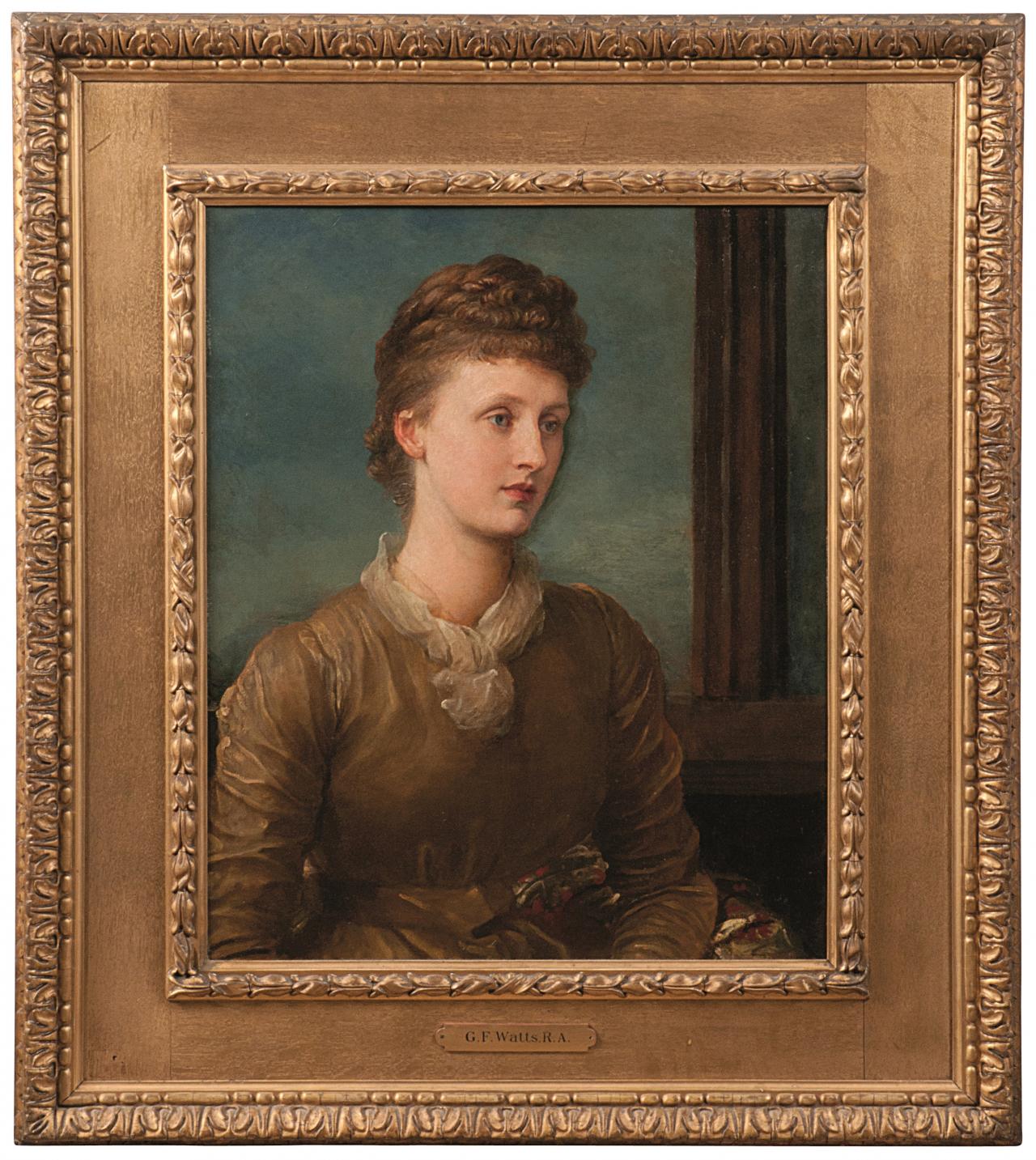 Despite its unconventionality, Watts’s portrait gained a public dimension when he sent it to the Royal Academy exhibition of 1873 where, as noted above, it attracted much comment. The next year, May, then aged twenty-one, duly made what would have been considered at that time an excellent marriage to stockbroker Andrew Kinsman Hichens (1833–1906), some twenty years her senior. She and her fiancé posed for Julia Margaret Cameron in the guise of the poetical romantic couple, Gareth and Lynette, from Tennyson’s Idylls of the King. And, it might be said that Cameron’s photographs of May played upon her beauty and did more for her prospects than Watts’s uncompromising image. May served as a subject for her cousin Val Prinsep on several occasions, including one work of the later 1870s showing her fashionably dressed and walking on a sunny day along Afton Down, near Freshwater, on the Isle of Wight.42 In complete contrast to Watts’s austere portrait, Prinsep’s work is an appealing, if undemanding image, on a modest scale. It amply conveys the affinity of the Prinsep family, and especially May, with this locale. Once married, May’s husband probably commissioned Watts to paint her in a new portrait, Mrs Andrew Hichens, exhibited at the Royal Academy in 1879 (private collection, fig. 10). May is portrayed here in a more conventional manner, the portrait reflecting her new secure identity as a well-to-do stockbroker’s wife; she is also seen this way in Frederic Leighton’s portrait of 1885 (private collection; on loan to Leighton House Museum, London).