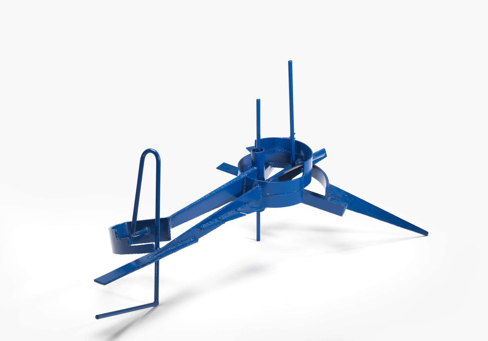 Among the earliest artists to produce works of this type in Australia were Lenton Parr and Inge King. After travelling to England in 1955, Parr worked as an assistant to the sculptor Henry Moore and began making his first welded sculptures. Created in Melbourne on his return, the vividly painted Daedalus, 1965, and Marina, 1965, form part of a group of important works by Parr that marked a major conceptual and stylistic change in his style and technique.1 Geoffrey Edwards, ‘Introduction’, in Lenton Parr: Vital Presences, Beagle Press, Sydney, p. 12. While his earlier sculptures are typically figurative and feature textured surfaces, Parr’s later works are characterised by a smooth, streamlined finish and often take the form of abstract circular and semi-circular steel plates and strips, reminiscent of agricultural machinery. As the artist explained, ‘I saw a possibility of a different kind of composition, one in which two or three forms or clusters of forms might be linked together by rods or bars’.2 Lenton Parr, ‘Retrospect’, in Lenton Parr: Vital Presences, p. 33.