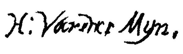 How could we know for sure that the earlier portrait was by another artist? Because Wright carefully and deliberately left the earlier artist’s signature on the painting! Undiscovered until recently, and barely visible in normal viewing light is an inscription in black paint, neatly encased by Anna Romana’s jewellery box painted by Wright. It reads: ‘H: Vander Myn’.