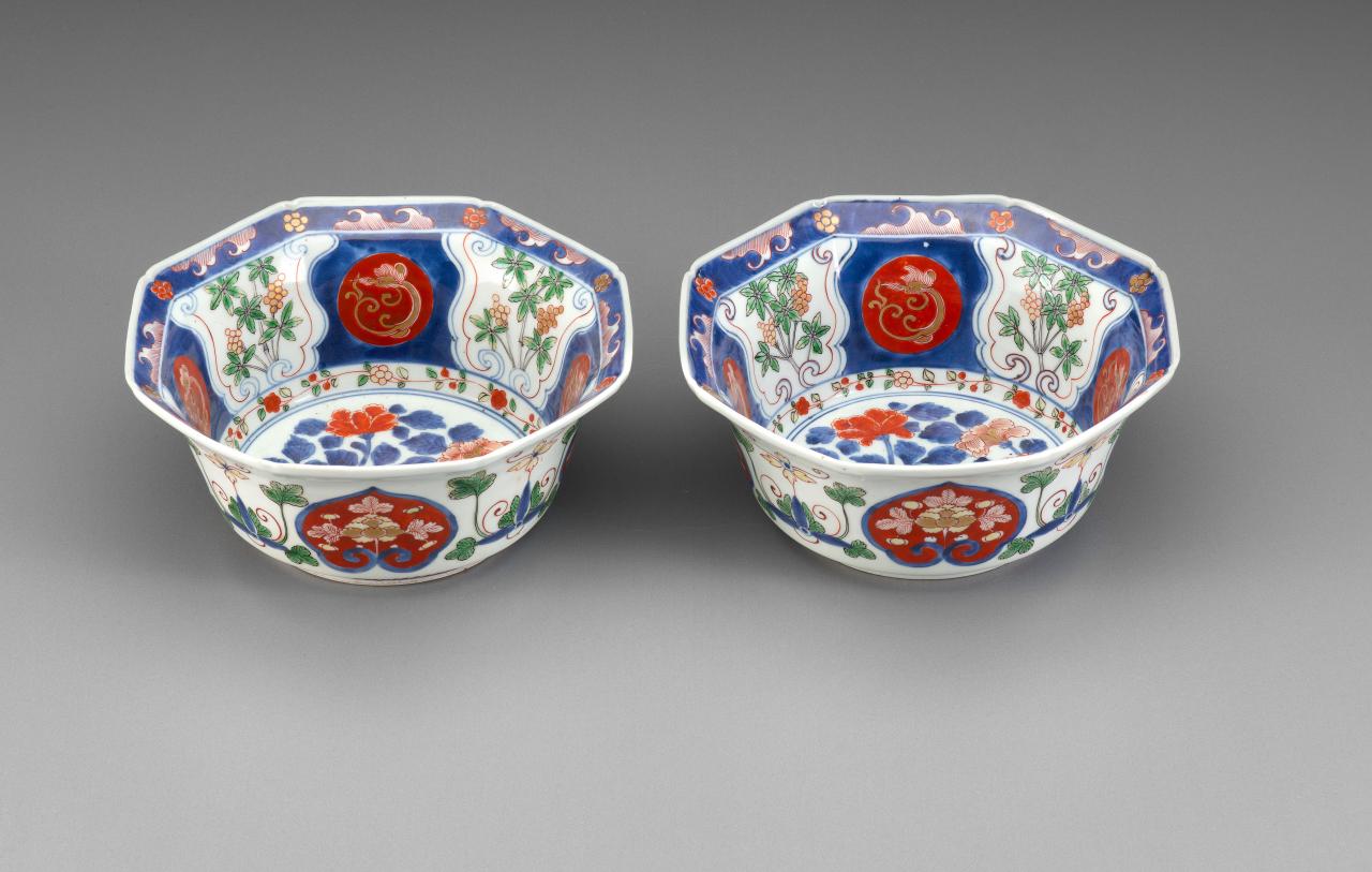 Some of the first polychrome ceramics are credited to Sakaida Kakiemon (1596–1666) and the Kakiemon family studio. The elegantly designed decoration on Kakiemon works followed the asymmetrical aesthetic and use of empty white space found in traditional brush and ink painting, as can be seen in Octagonal bowl birds and flowers, 17th–18th century The name Kakiemon is thought to originate from kaki, meaning persimmon, which refers to the subject as well as the distinctive red colour that features on many of the studio’s earliest pieces. Interestingly, visitors to the Kakiemon studio, now under the custodianship of Sakaida Kakiemon XV (1968–), can find a persimmon tree growing in its courtyard to this day. During the seventeenth century Kakiemon porcelain ware became the most highly sought-after porcelain in Europe.